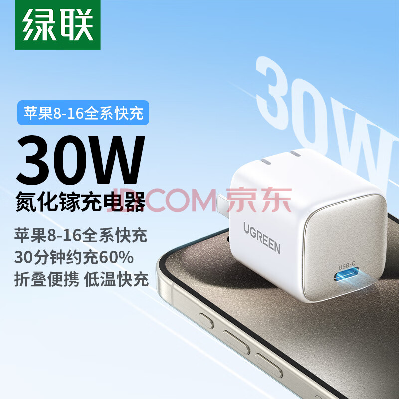 商品相册:绿联30W氮化镓充电器适用苹果iPhone17/15ProMax/Plus充电头兼容pd20/27W手机ipad平板Type-C快充插头第