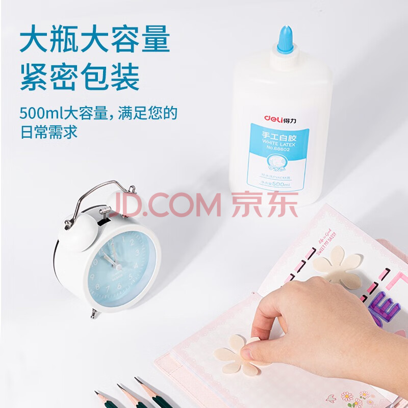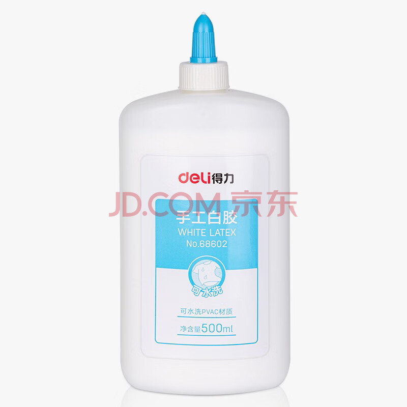 商品相册:得力(deli)500ml手工白胶 学生开学文具DIY白乳胶 环保无甲醛可水洗胶水 学习用品 单支 68602第1张/共5