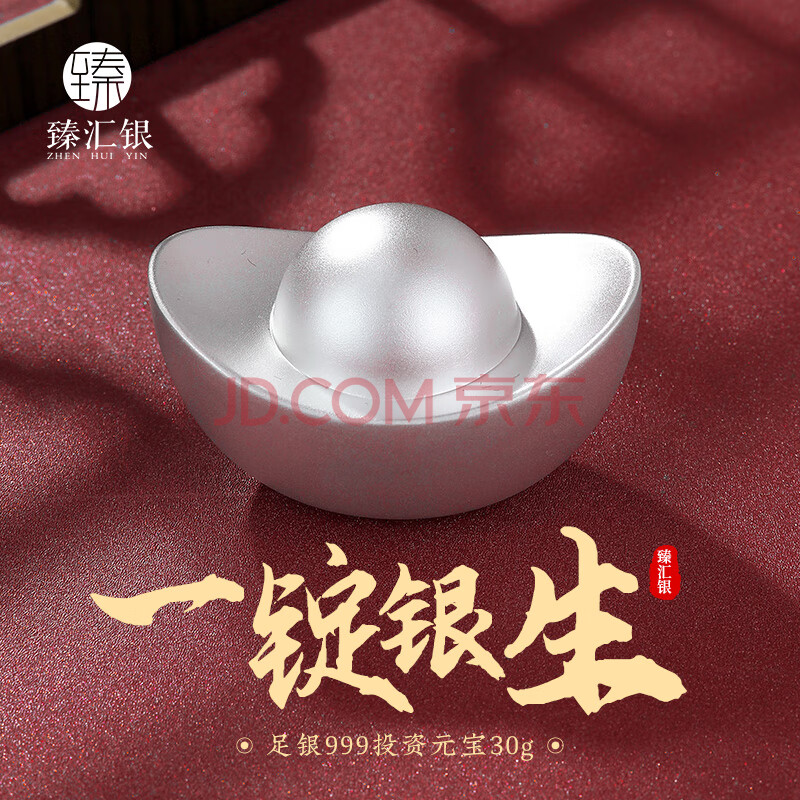 商品相册:臻汇银999足银元宝银锭银子投资收藏年会抽奖长辈礼物一锭银30g第1张/共4