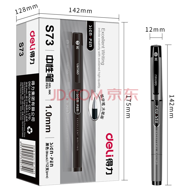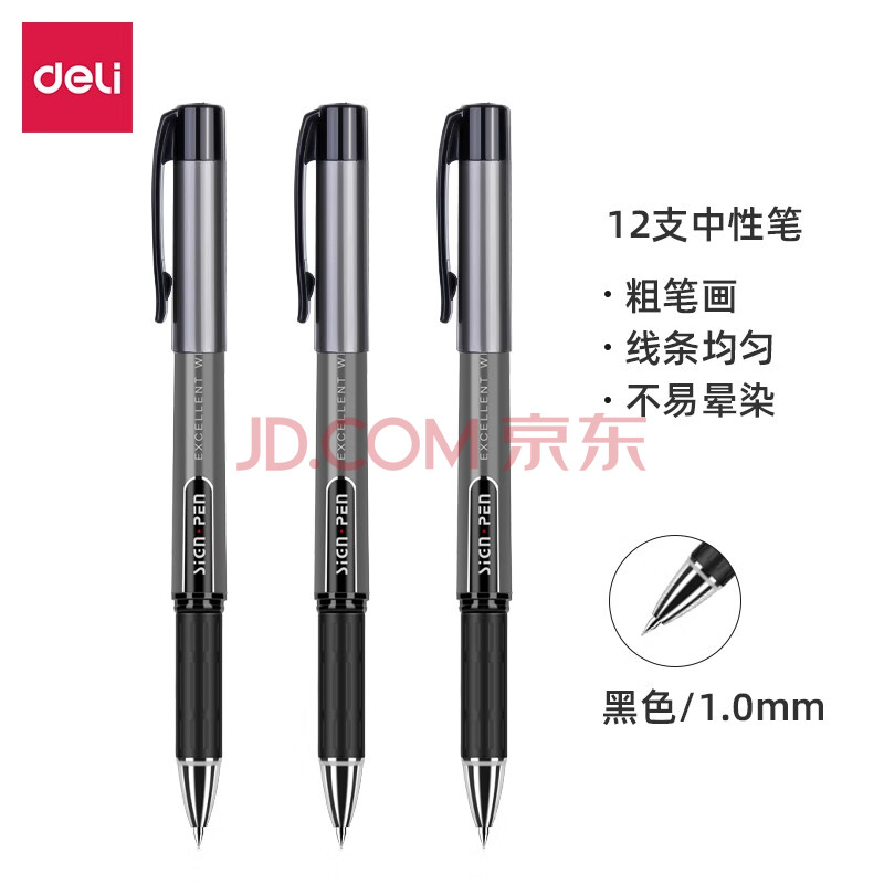 商品相册:【开学必备】得力(deli)1.0mm办公中性笔碳素签字笔 办公用品 12支/盒 12盒装 S73黑色第