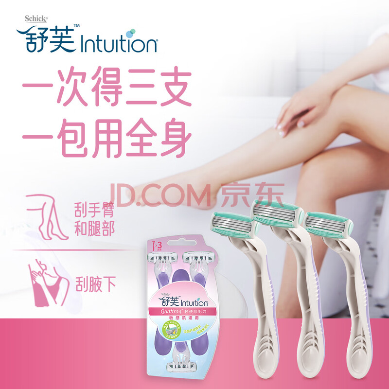商品相册:舒适(Schick)舒芙女士轻便刀3个装 手动刮毛刀脱毛刀腋下剃毛器 便携装第