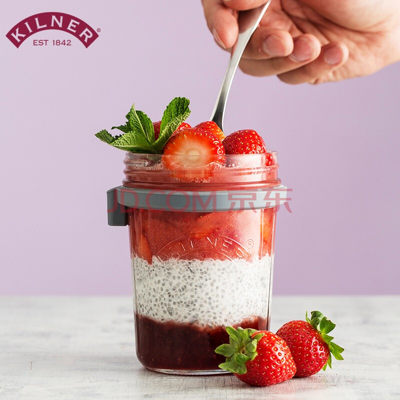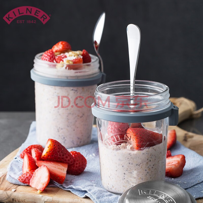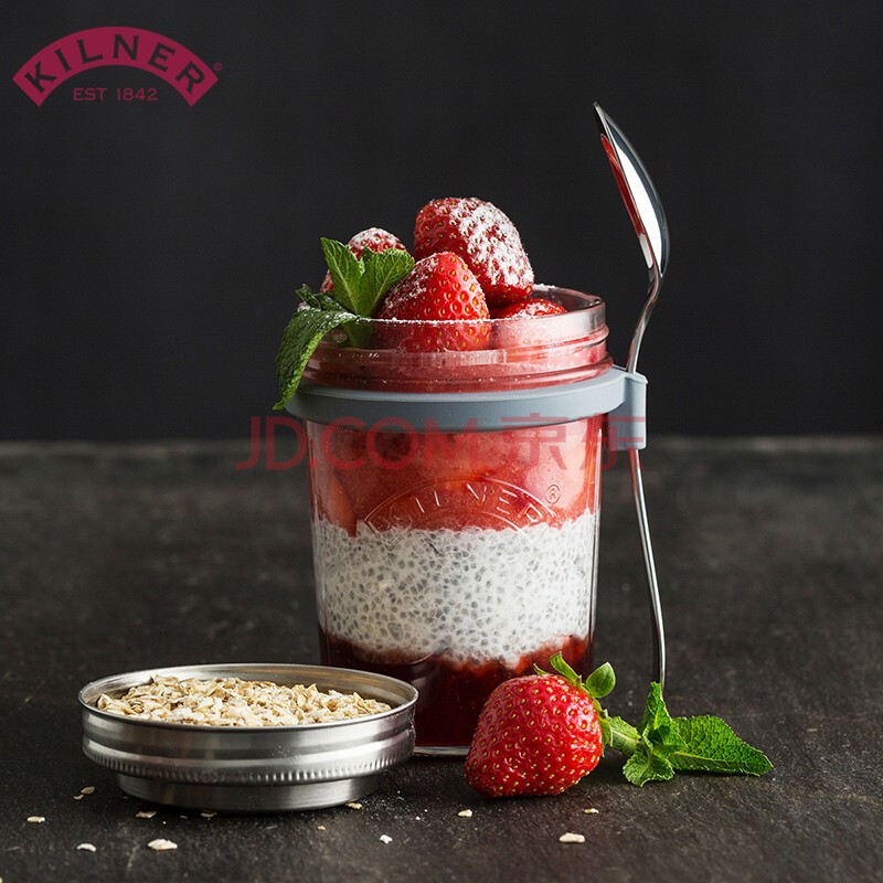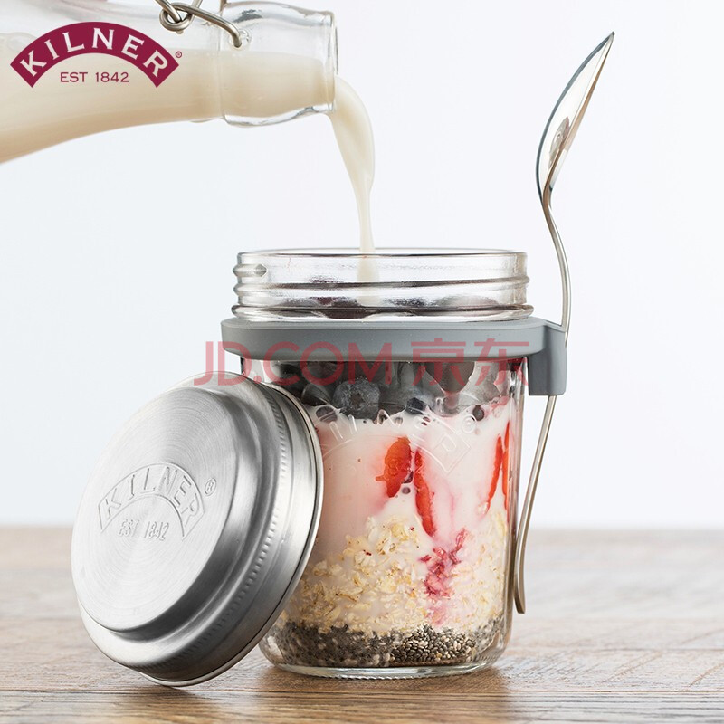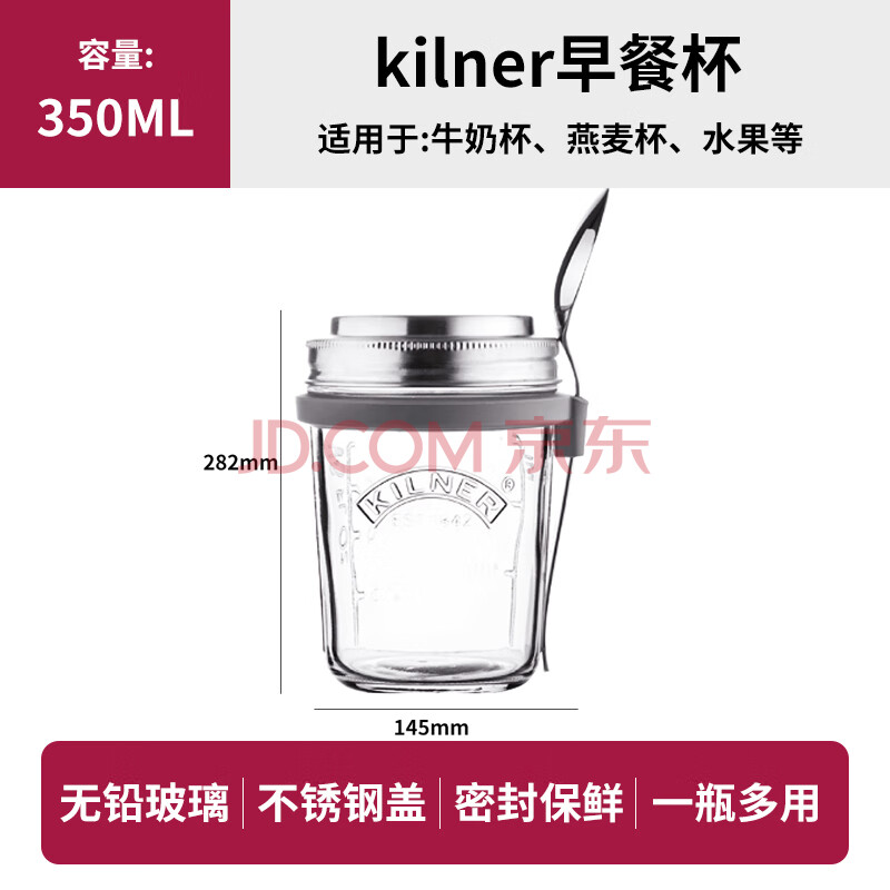 商品相册:kilner隔夜燕麦杯 玻璃早餐杯 牛奶杯 密封便携食品级 带刻度盖勺 350ml第1张/共6
