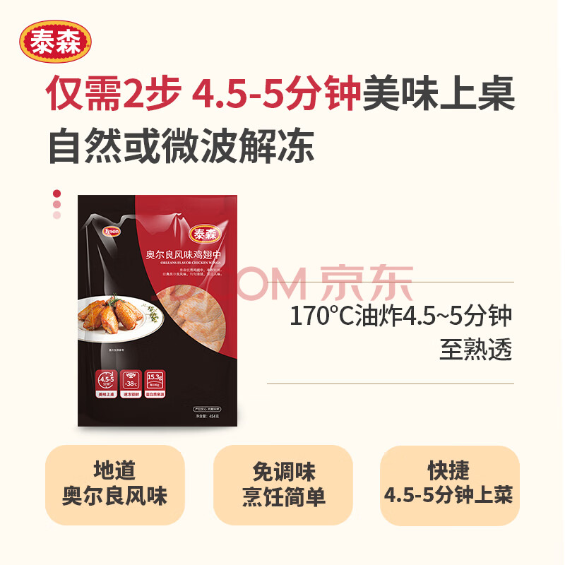 商品相册:泰森(Tyson)奥尔良鸡翅中454g 烧烤鸡翅鸡中翅冷冻半成品生鲜空气炸锅食材第
