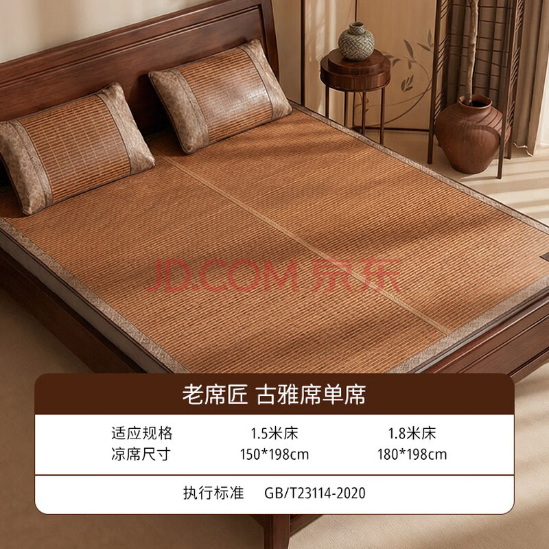 商品相册:老席匠古雅碳化头层竹青竹席凉席双人单席150*200【可折叠 双面可用】第