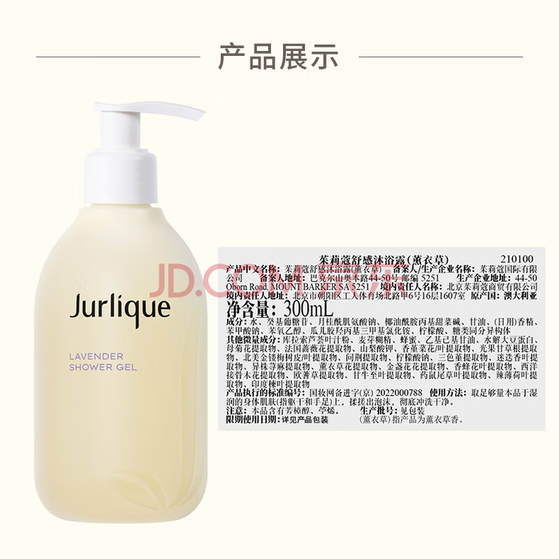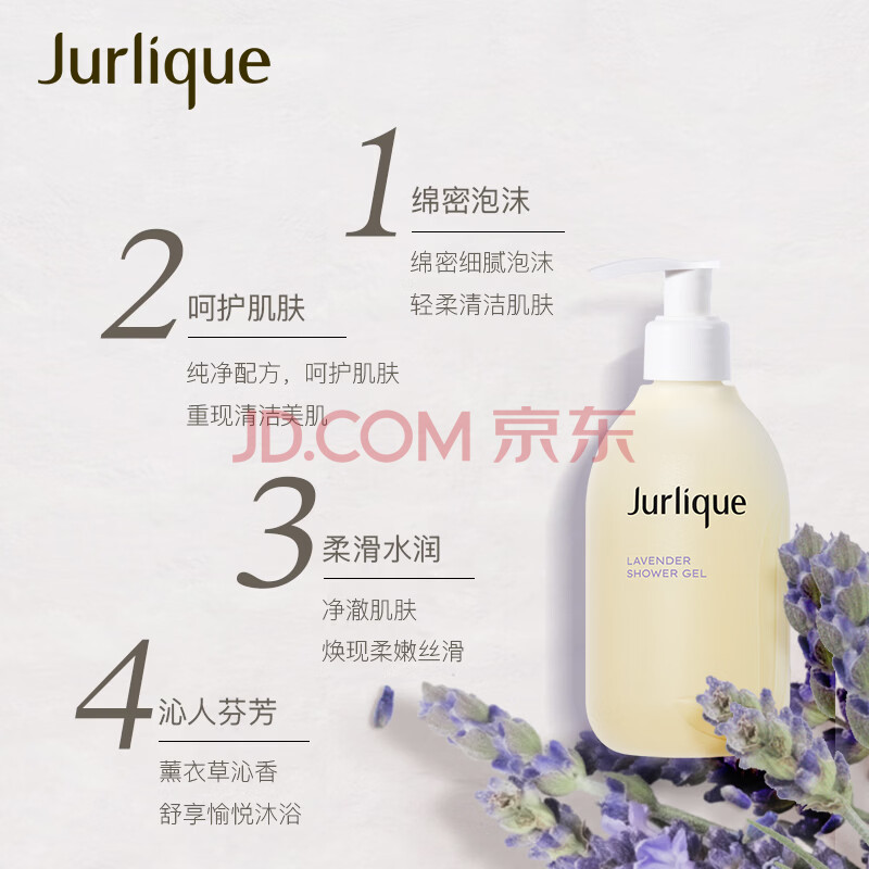 商品相册:茱莉蔻(Jurlique)薰衣草舒感沐浴露300ML 花香沐浴液深层清洁滋润保湿 生日礼物第1张/共4