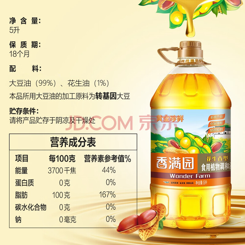 商品相册:香满园天天谷香 花生浓香型 食用植物调和油5L 食用油 金龙鱼荣誉出品第