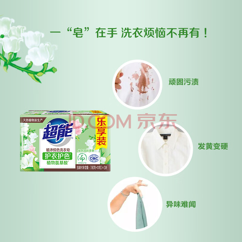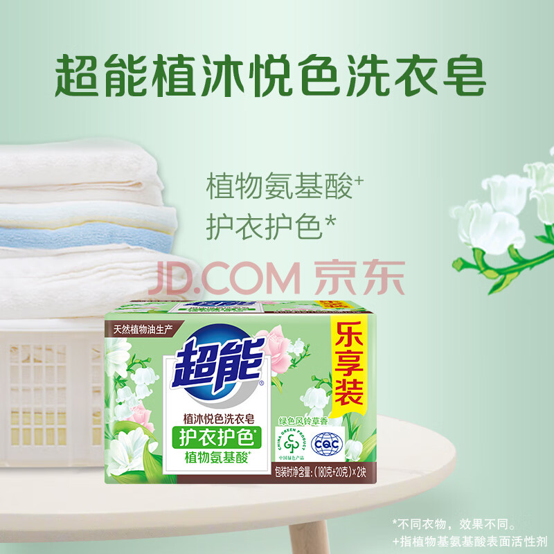 商品相册:超能 植沐悦色洗衣皂 风铃草香(180g+20g)*2 植物氨基酸(新老包装升级第