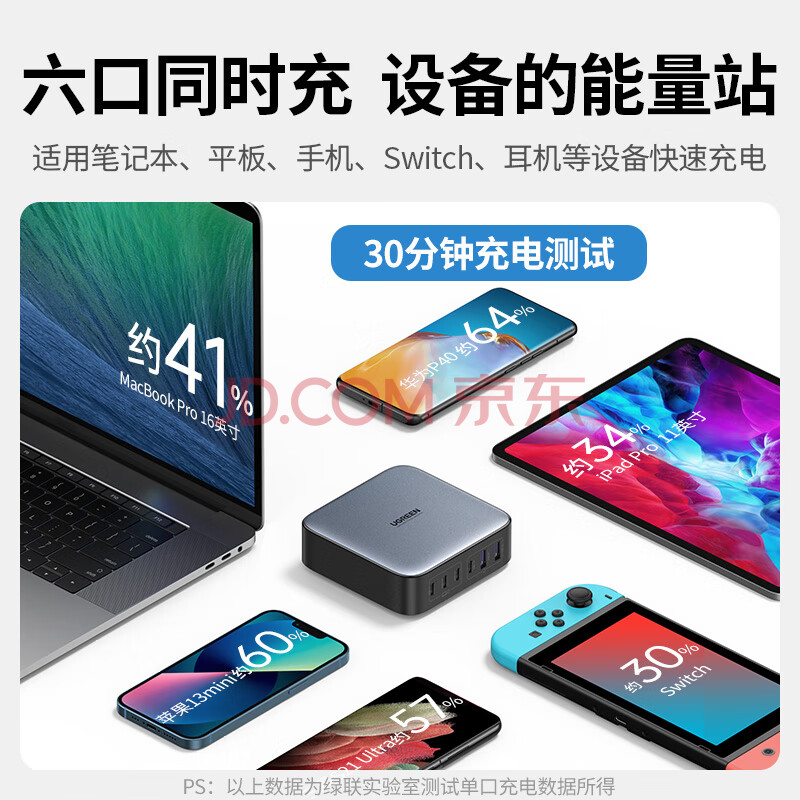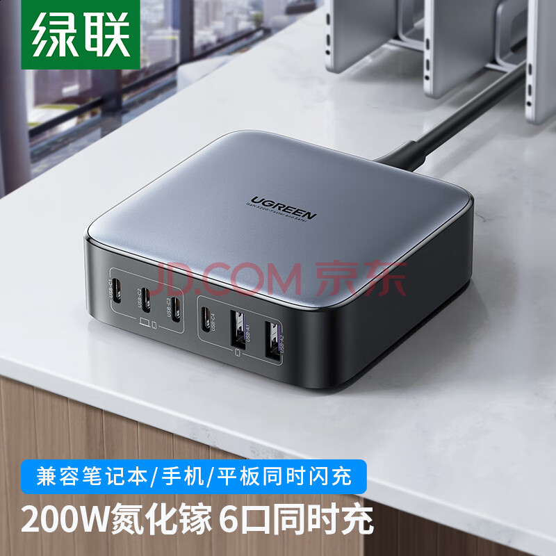 商品相册:绿联200W氮化镓充电器多口快充头桌面插线板兼容PPS/pd100W适用小米苹果MacbookPro笔记本电脑手机配线第