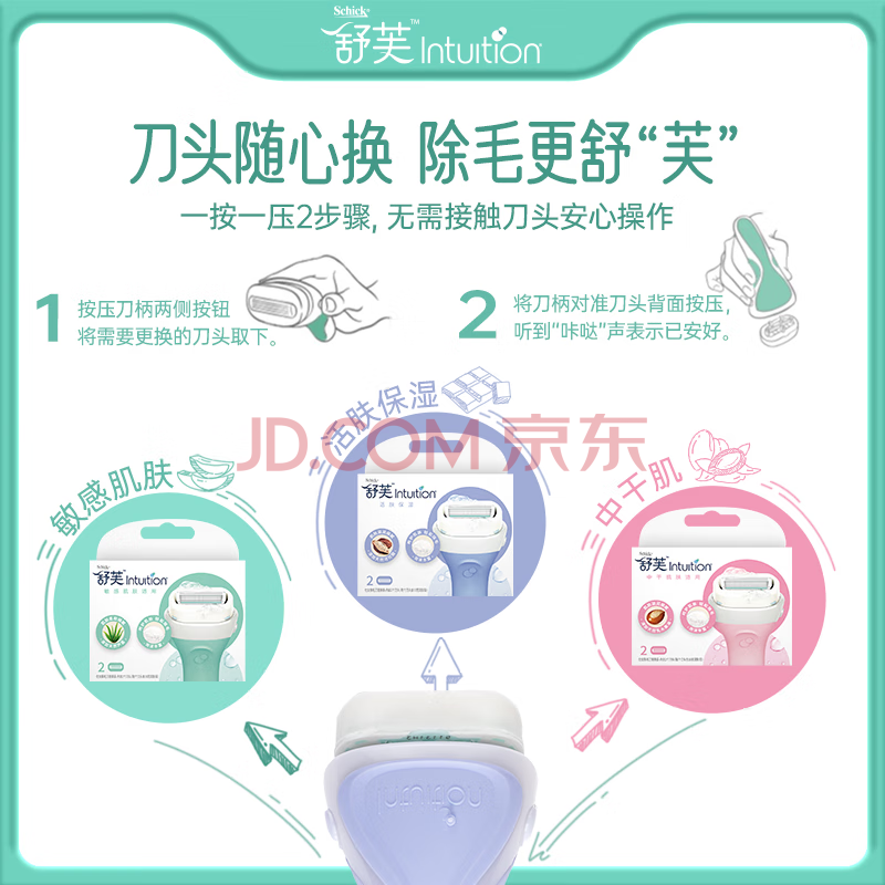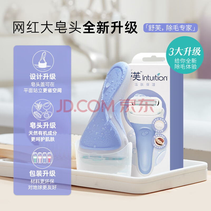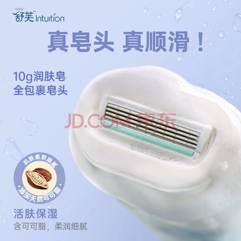 商品相册:舒适(Schick)【新老包装随机发货】舒芙大皂头保湿款刮毛刀【1刀柄2刀头】第1张/共9