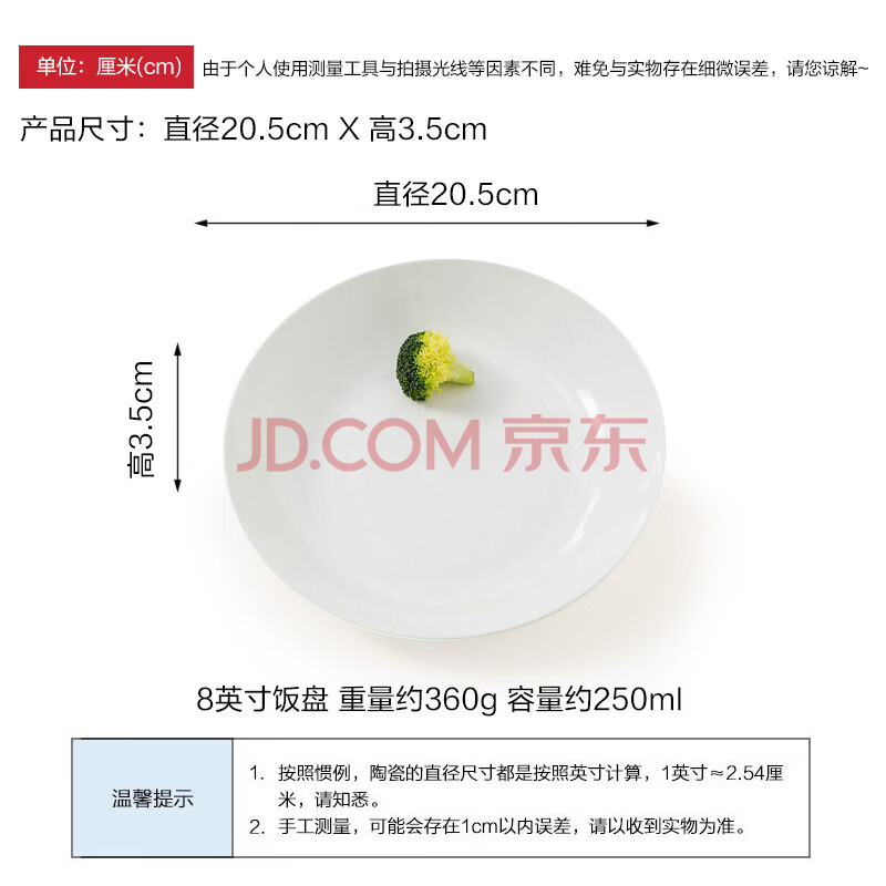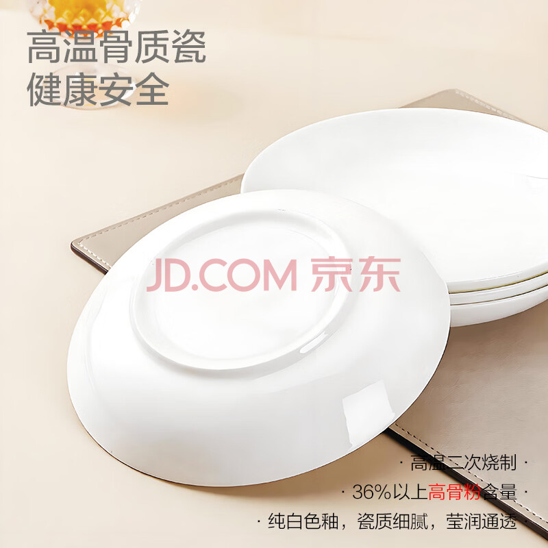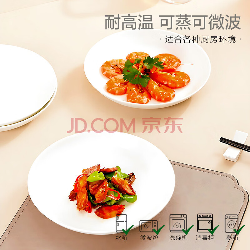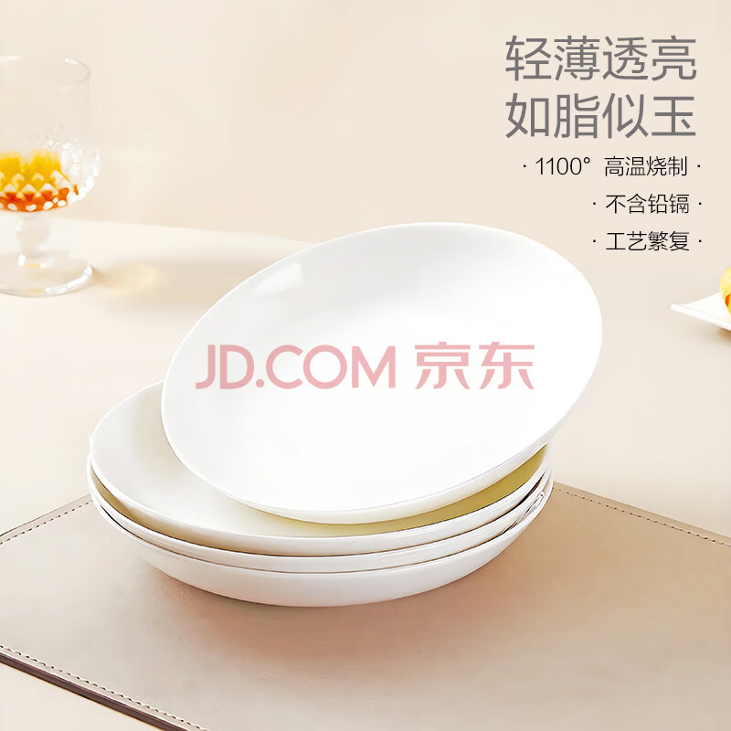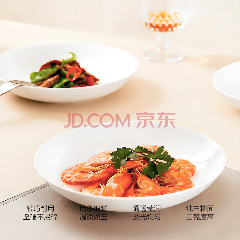 商品相册:斯凯绨(Sky Top)陶瓷盘子骨瓷深菜盘家用乔迁餐具纯白8英寸饭盘4件套装第1张/共8