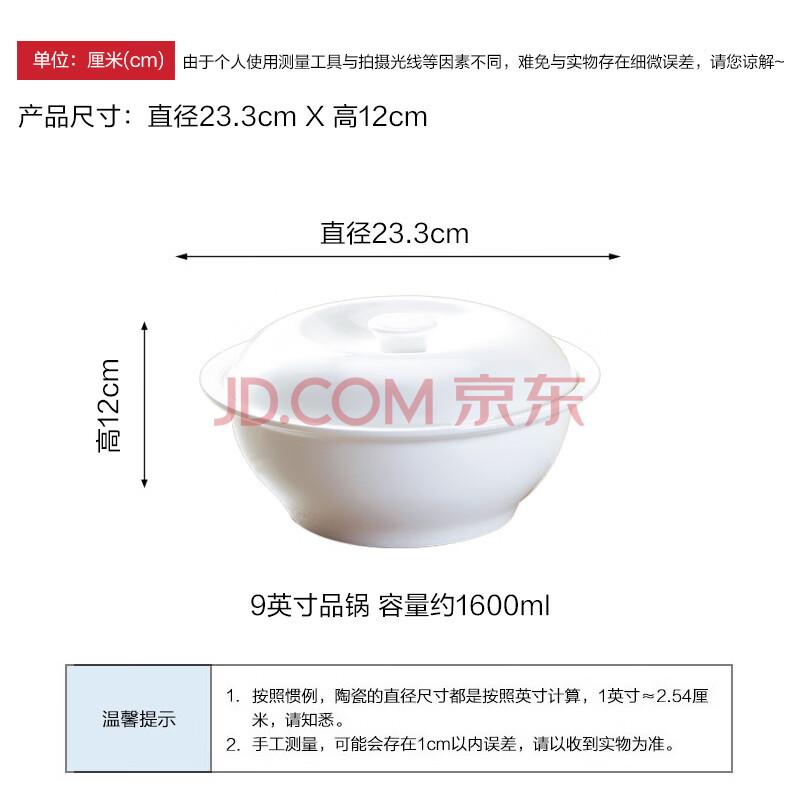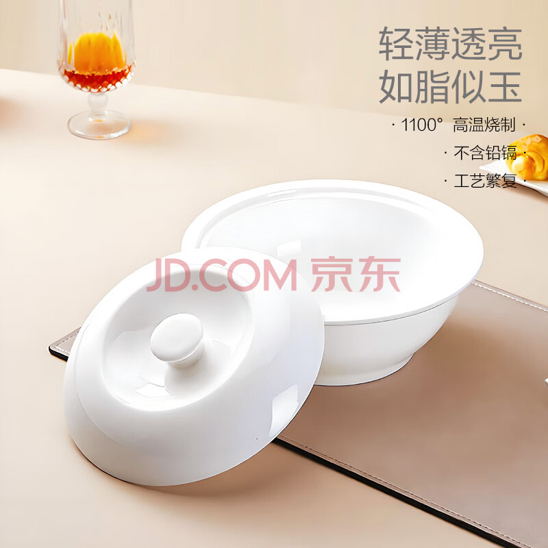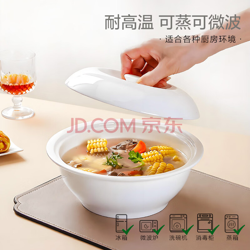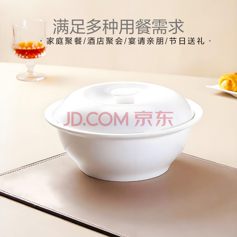 商品相册:斯凯绨(Sky Top)碗带盖汤盆骨瓷大汤碗陶瓷大容量纯白家用酒店餐具9英寸品锅第