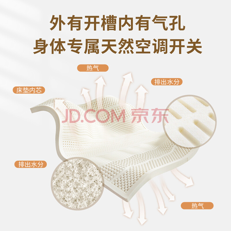 商品相册:京东京造森呼吸乳胶床垫 泰国原芯进口93%天然乳胶70D双人180x200x5cm第1张/共9