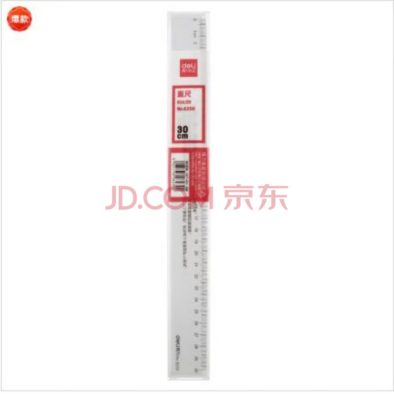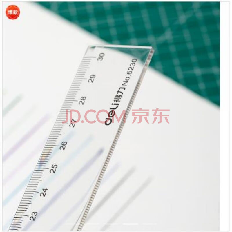 商品相册:得力(deli) 塑料直尺30cm厘米学生尺子文具绘图制图刻度尺 6230-30cm塑料直尺 20只/1盒装第