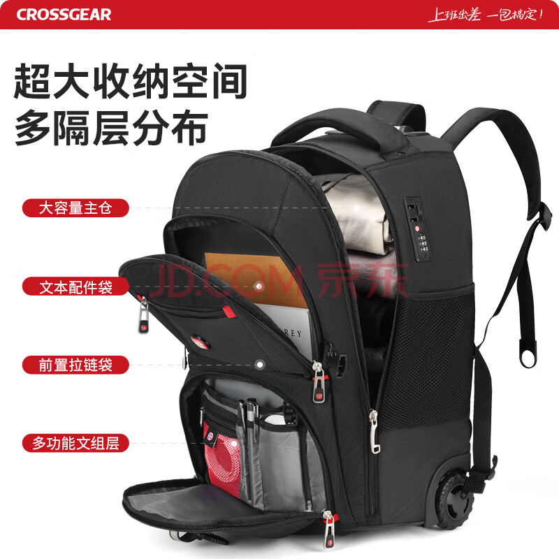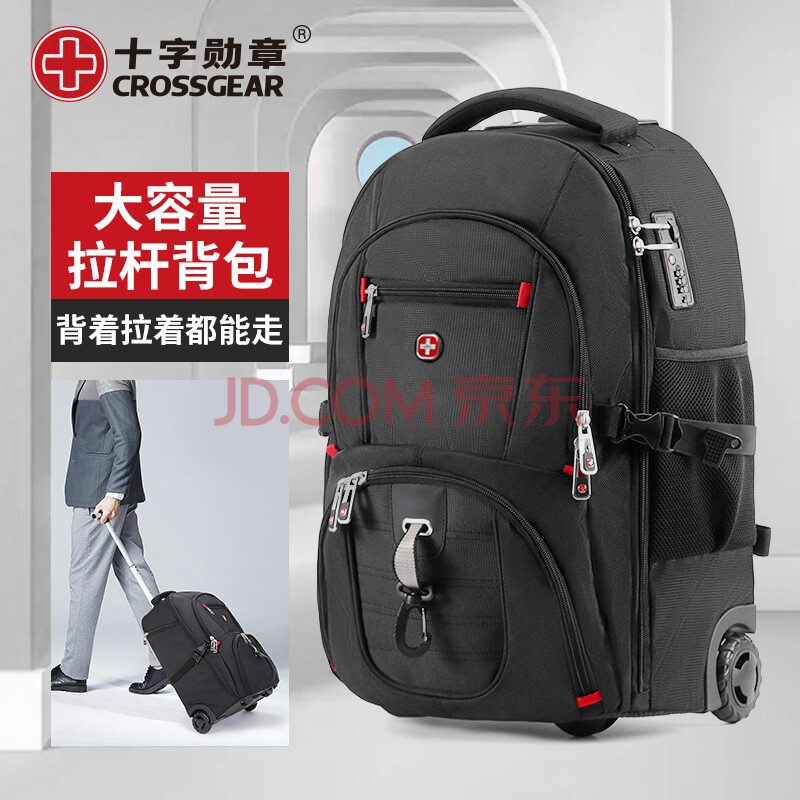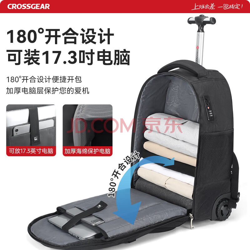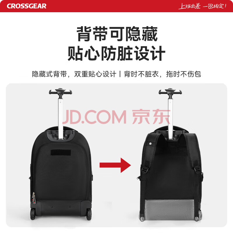 商品相册:CROSSGEAR双肩拉杆包17.3吋大容量出差行李包滑轮登机拉杆旅行包学生书包第