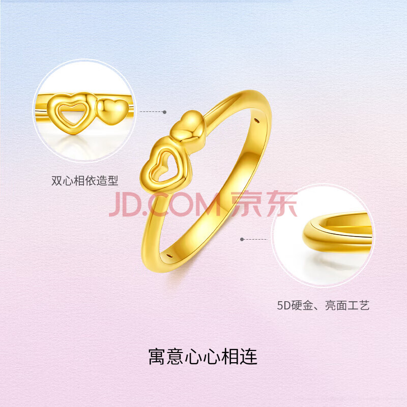 商品相册:周六福5D硬金黄金戒指女爱心生日礼物定价AE016741 11号 约0.76g 第