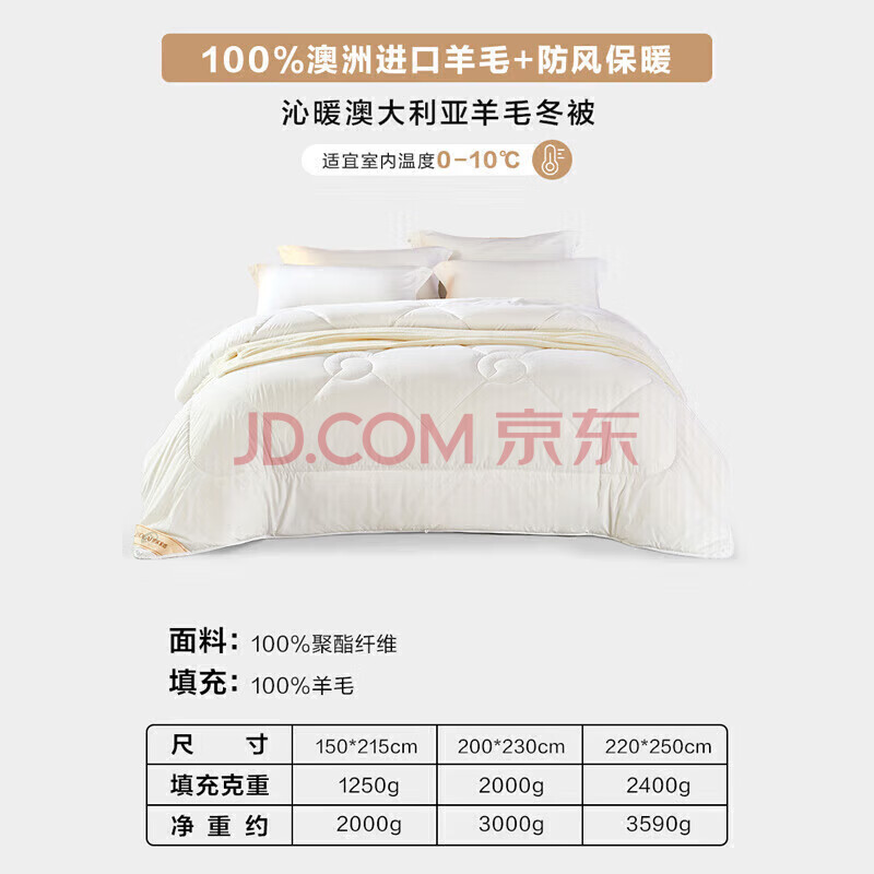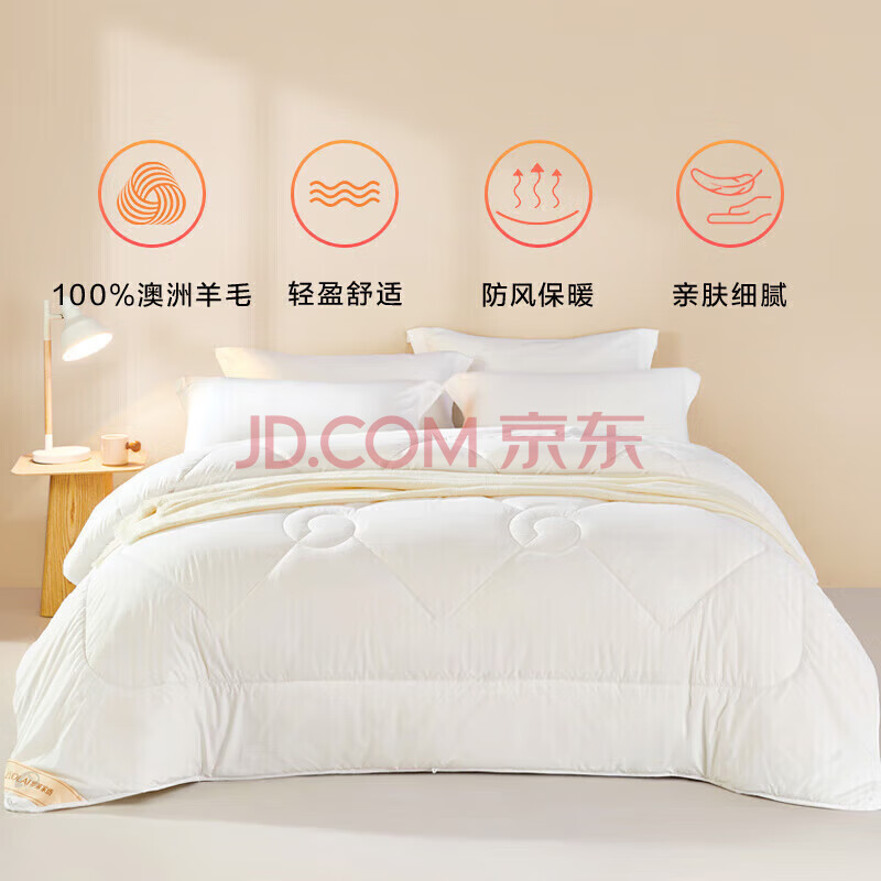 商品相册:罗莱家纺 羊毛被子 100%澳洲进口羊毛抗菌保暖冬被芯 重约4斤第