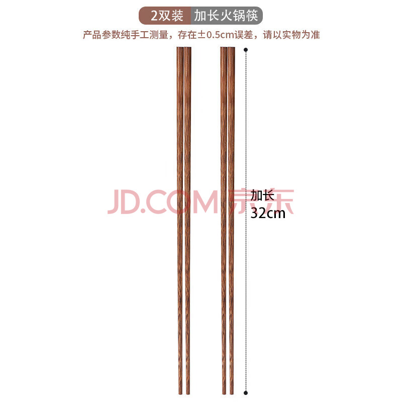 商品相册:拾画原木鸡翅木加长火锅筷子公筷 家用酒店无漆无蜡筷子2双装32cm第