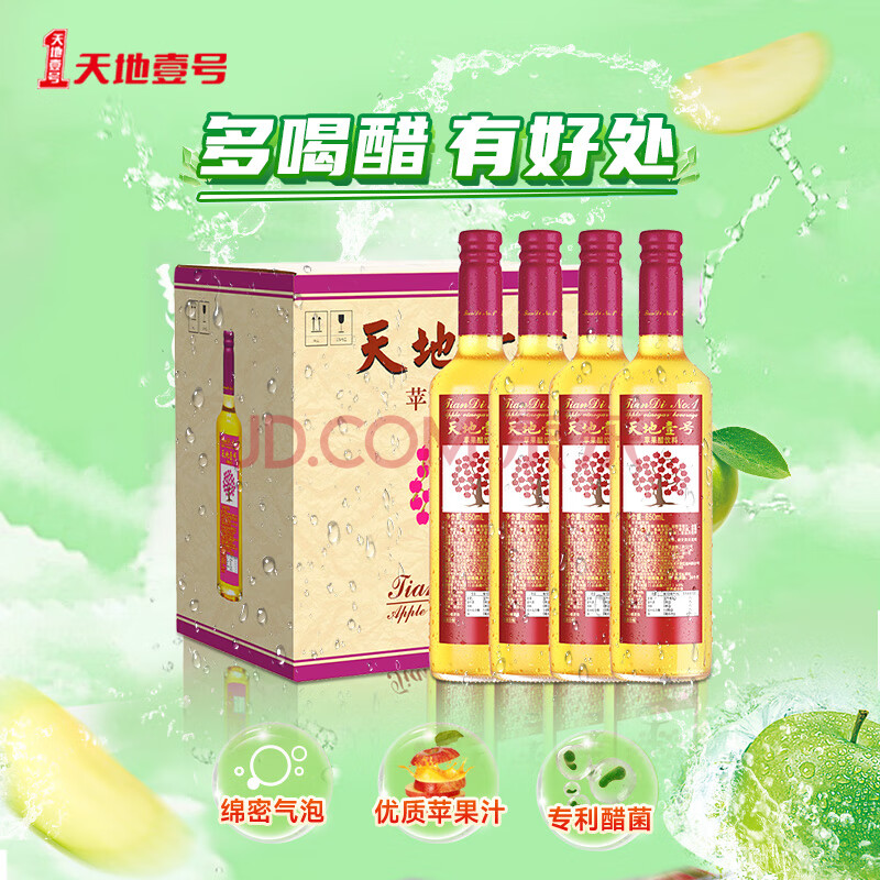 商品相册:天地壹号 苹果醋饮料650ml*12整箱酸爽解腻低糖0脂 年货聚餐 多喝醋有好处第