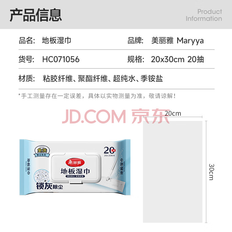 商品相册:美丽雅静电除尘纸20*30cm*20张洗脸巾平板夹布拖把拖地擦地板清洁湿巾第1张/共7