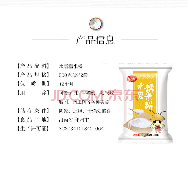 商品相册:蜜丹儿水磨糯米粉1斤*2袋 汤圆粉南瓜饼粉冰皮月饼年糕粉糍粑原料第