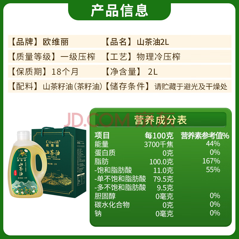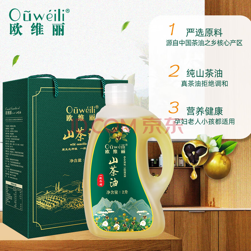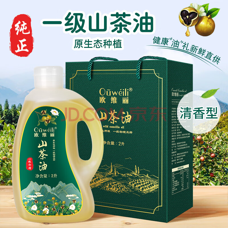 商品相册:欧维丽(Ouweili)保真山茶油2L礼盒 一级压榨原香茶籽油 孕妇儿童茶油礼盒团购第