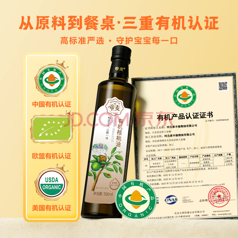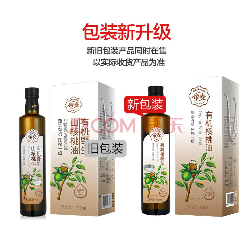 商品相册:帝麦有机核桃油500ml适用于儿童宝宝孕妇食用油 热门礼盒第