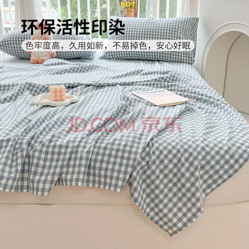 商品相册:雅鹿·自由自在床单单件A类抗菌大被单床罩磨毛水洗双人床单230x245cm布丁蓝第