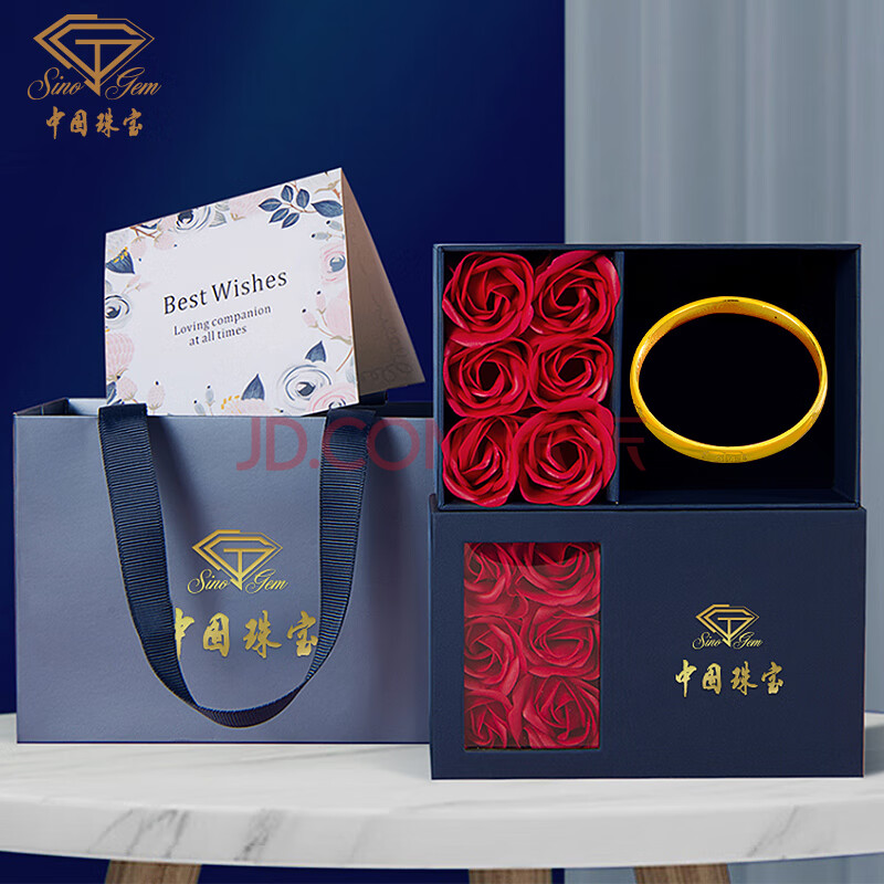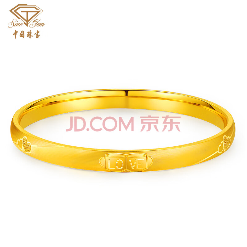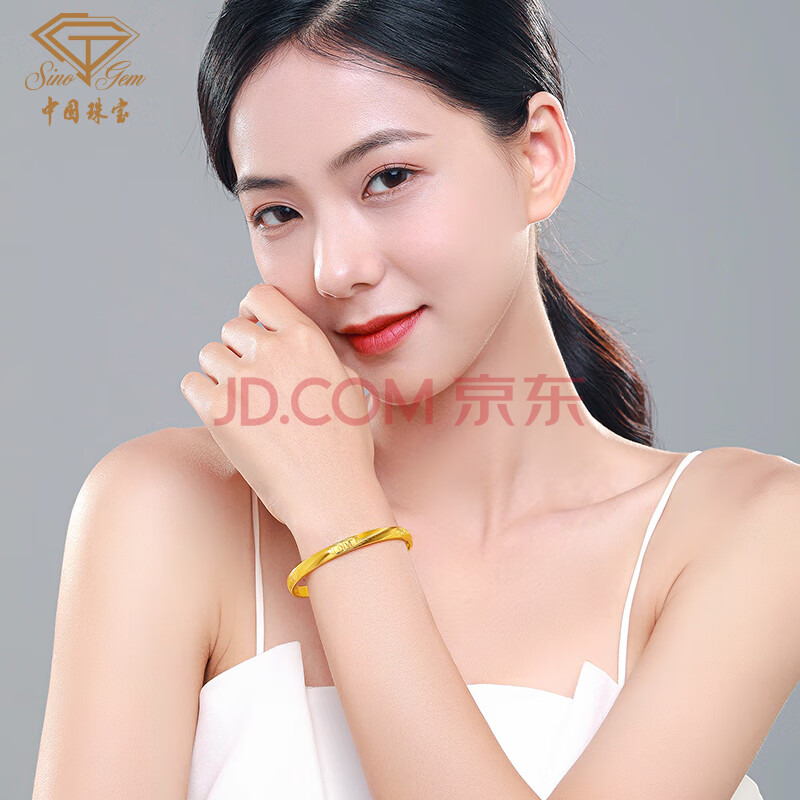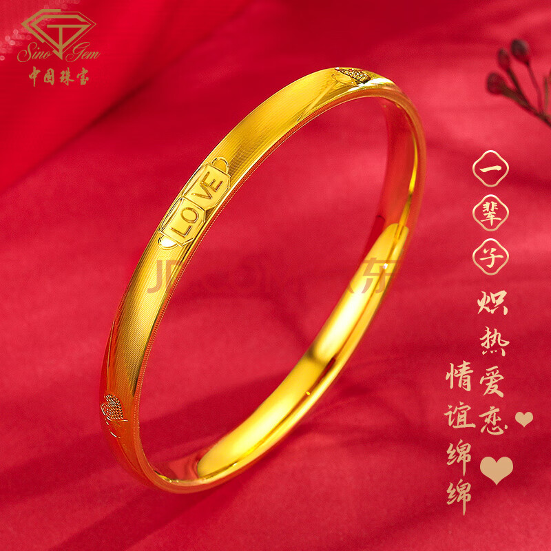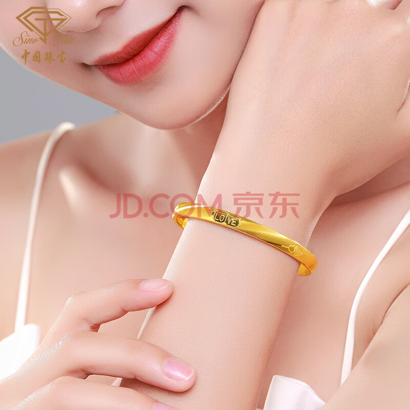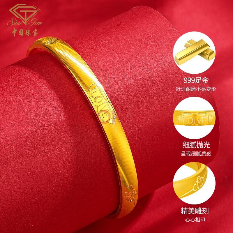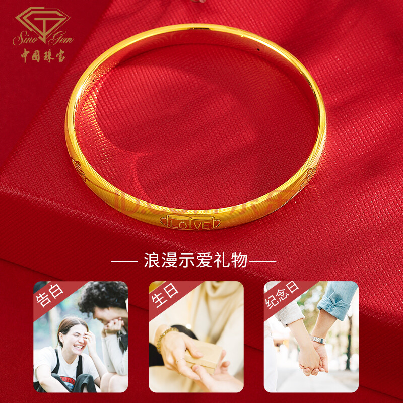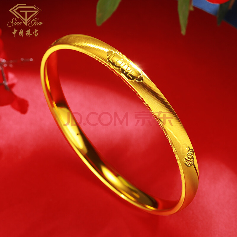 商品相册:中国珠宝生日礼物送女友 黄金手镯宽面A2镯子金重约:8.5g/58圈口第