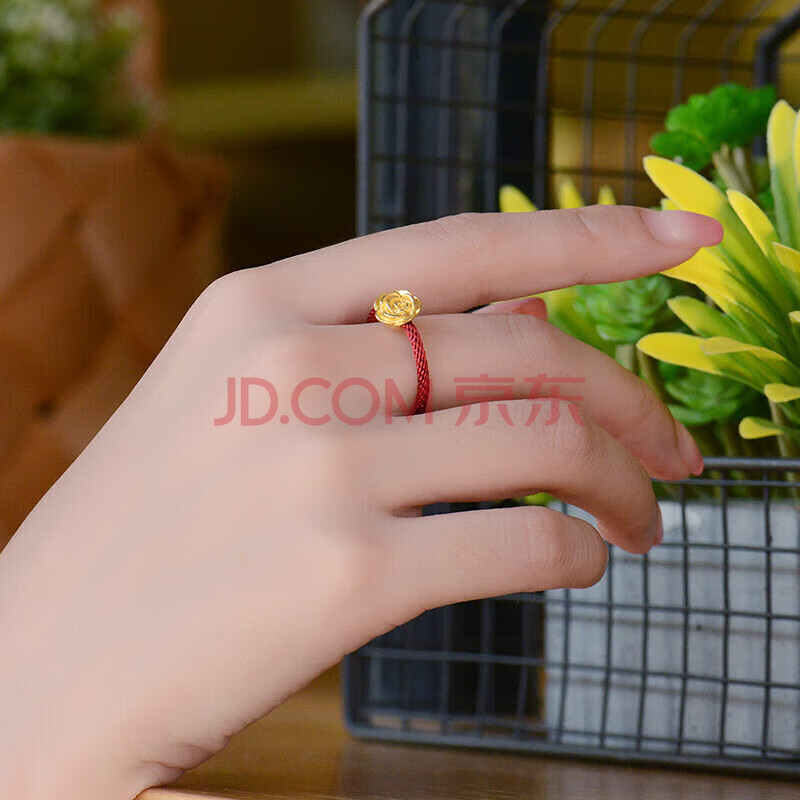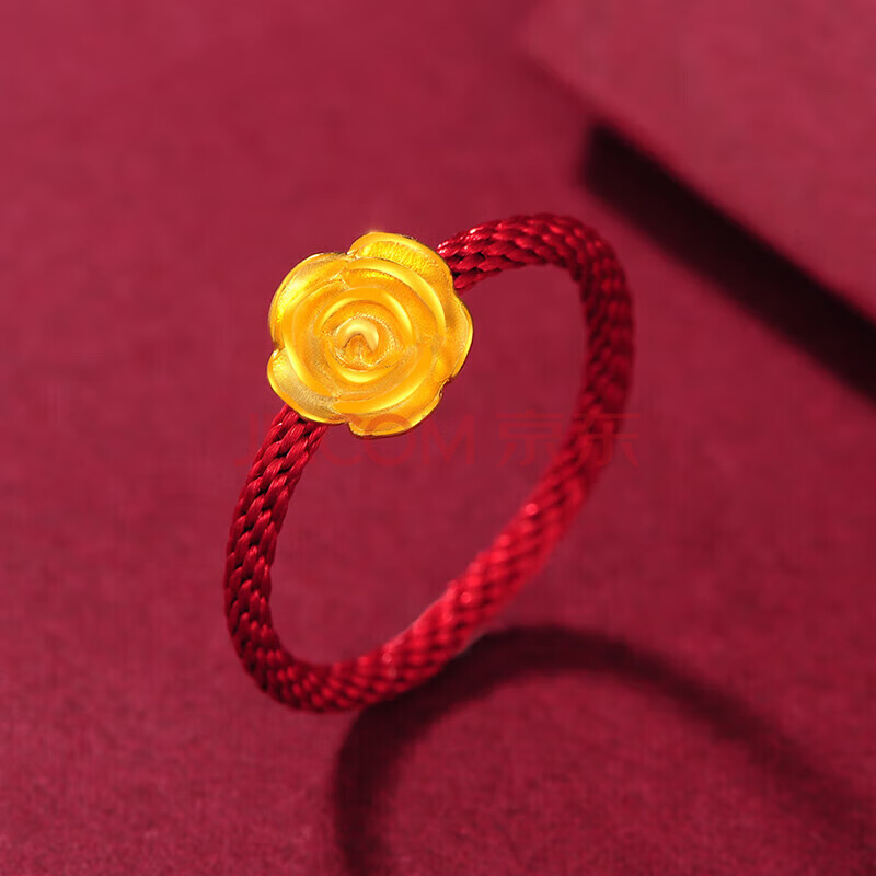 商品相册:蒂蔻(Tico)足金玫瑰花黄金戒指女3D金转运珠编织红绳指环女友老婆生日礼物第