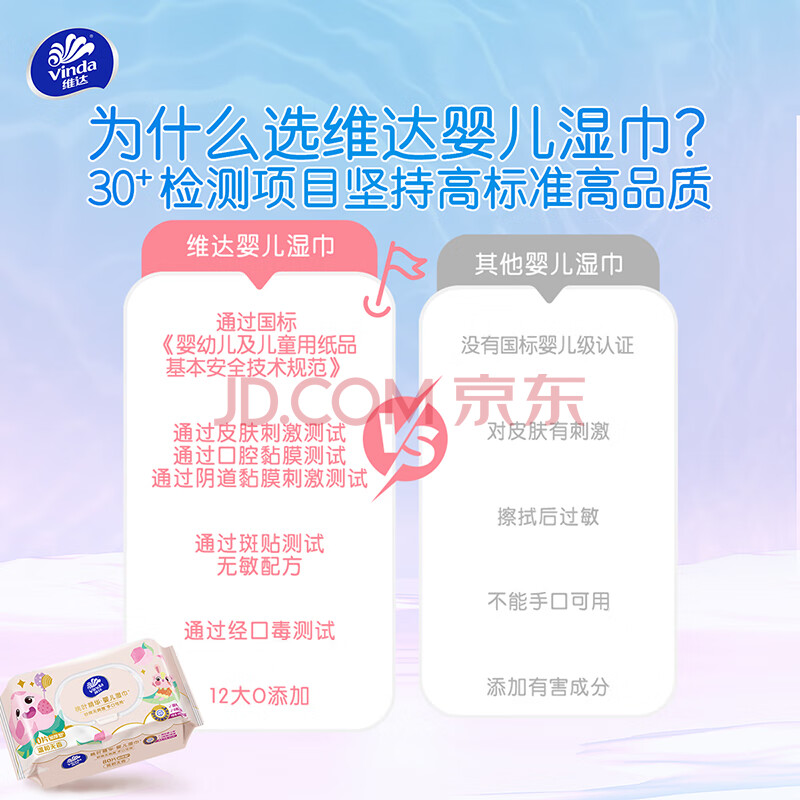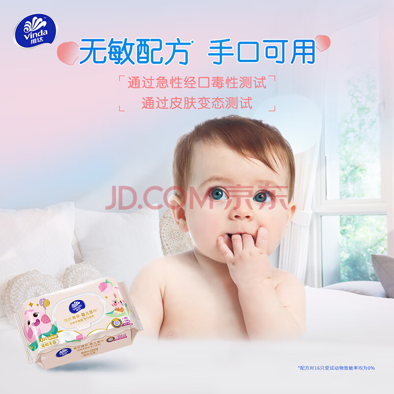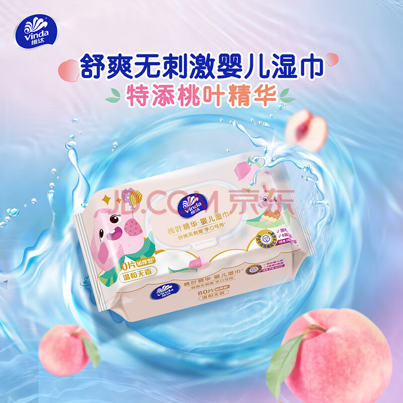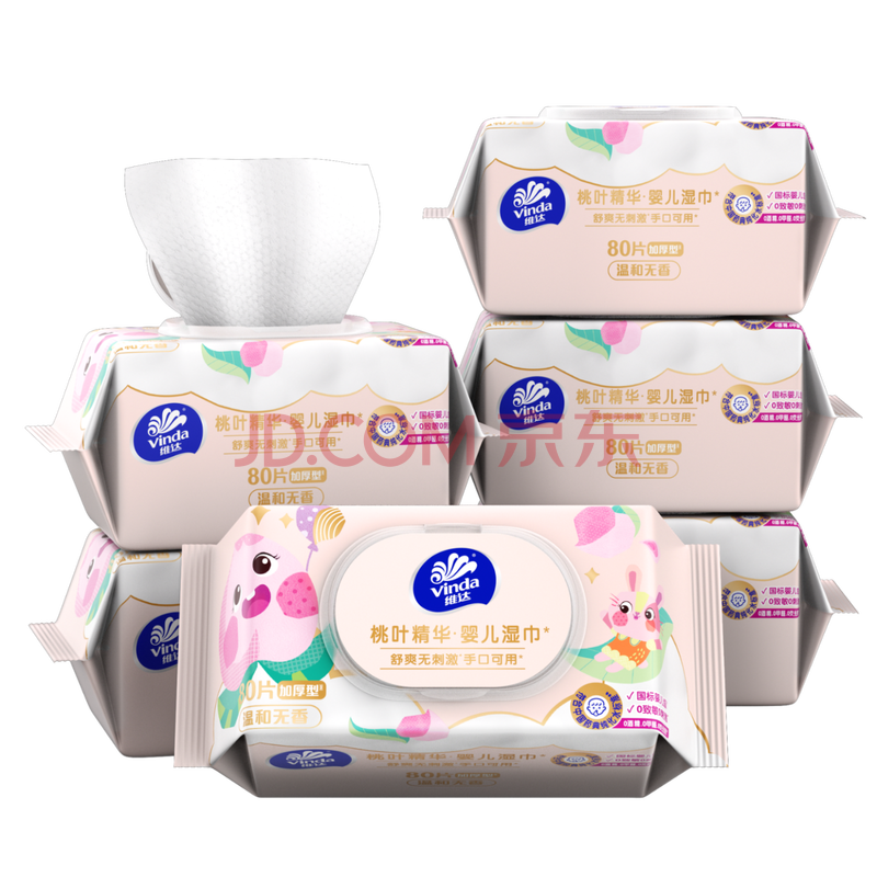 商品相册:维达(Vinda)婴儿手口湿巾80片*6包 桃叶精华加厚加大手口专用亲肤湿纸巾大包第