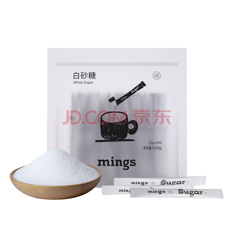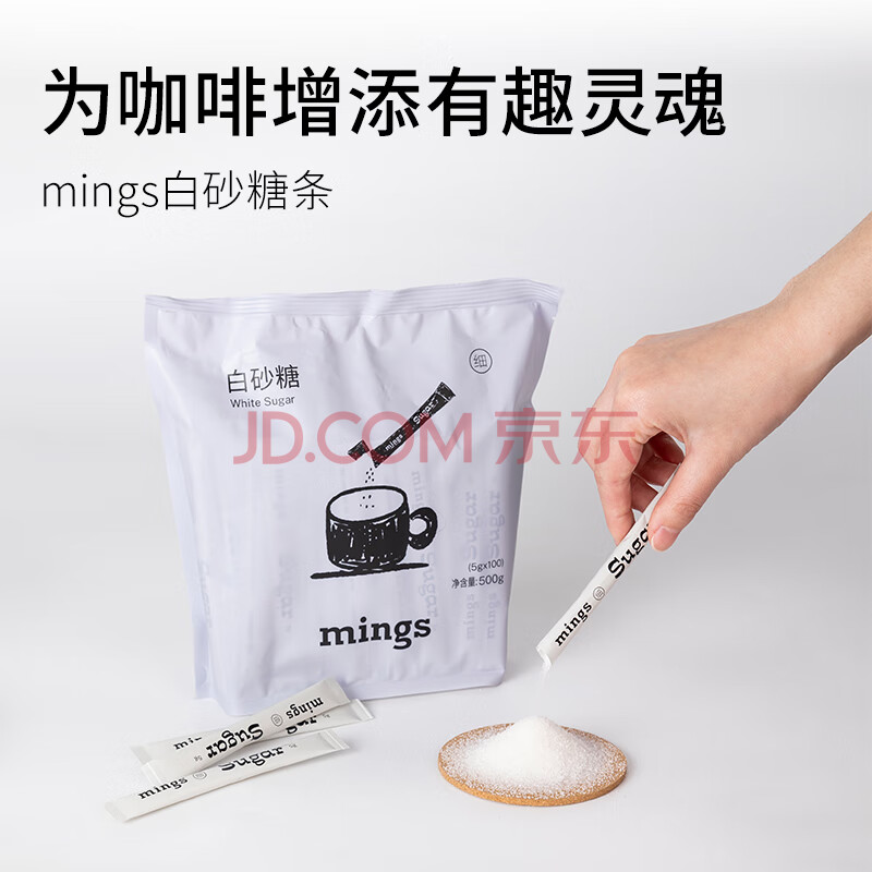 商品相册:铭氏Mings 咖啡糖包 优级白砂糖 独立包装 条形白糖包5g*100条 伴侣 第
