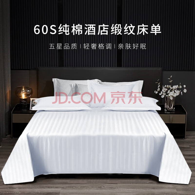 商品相册:源生活 白色床单单件 星级酒店被单60支纯棉缎纹床裙床罩 175*230cm 第1张/共3