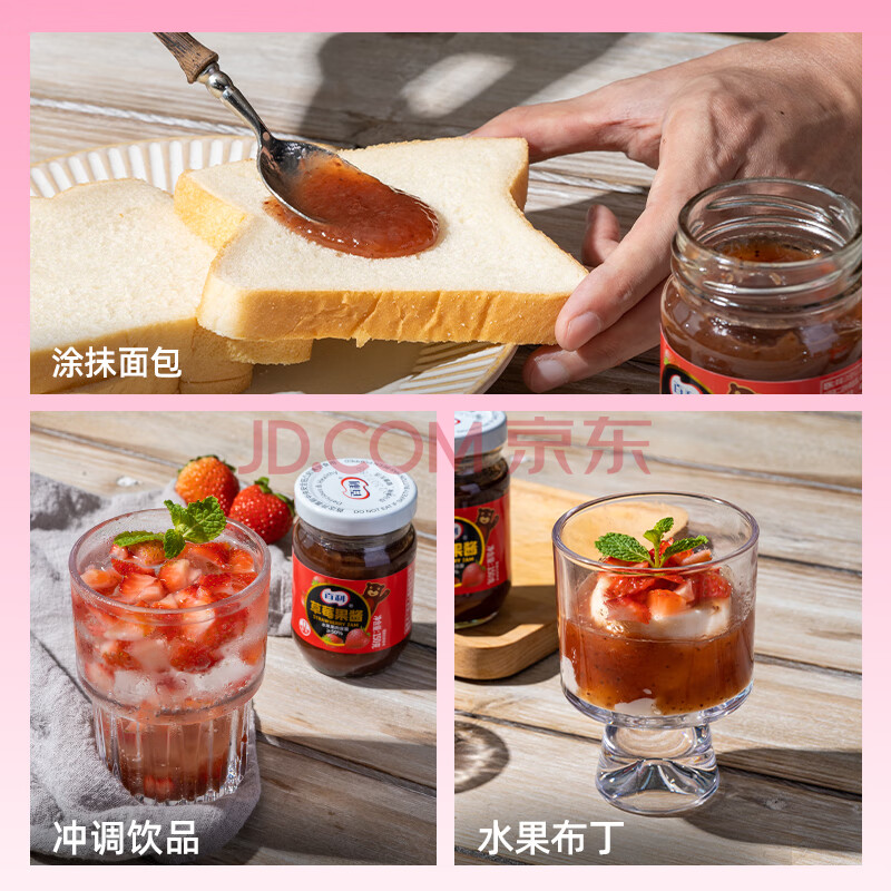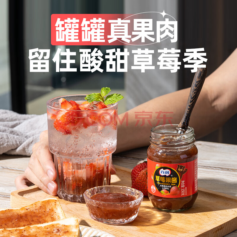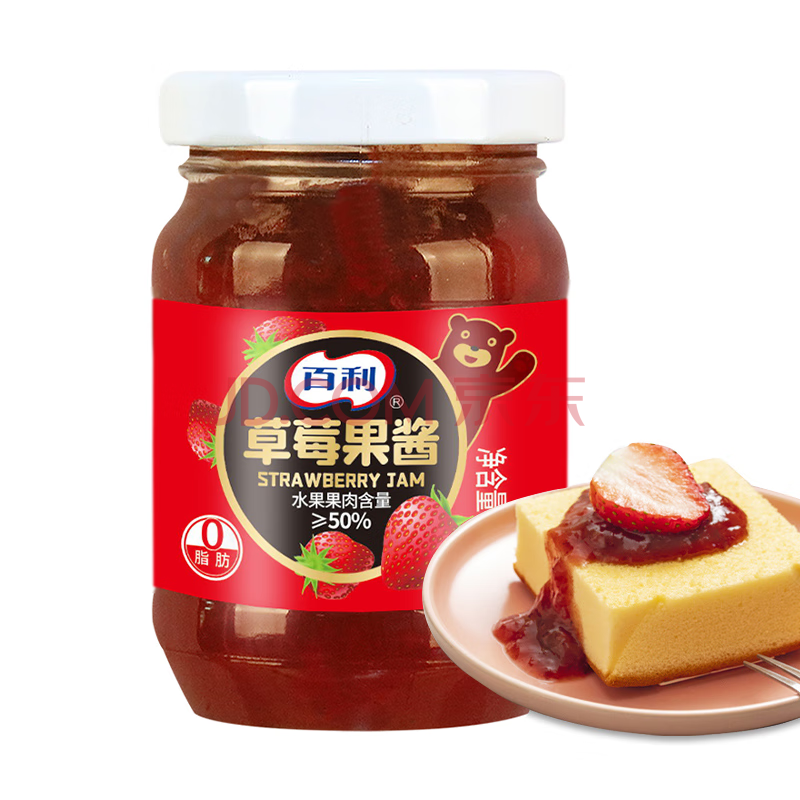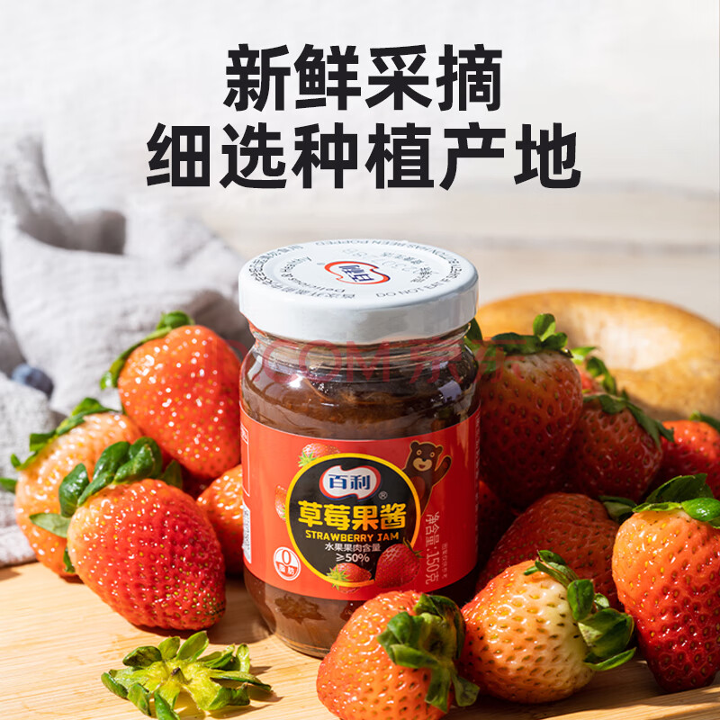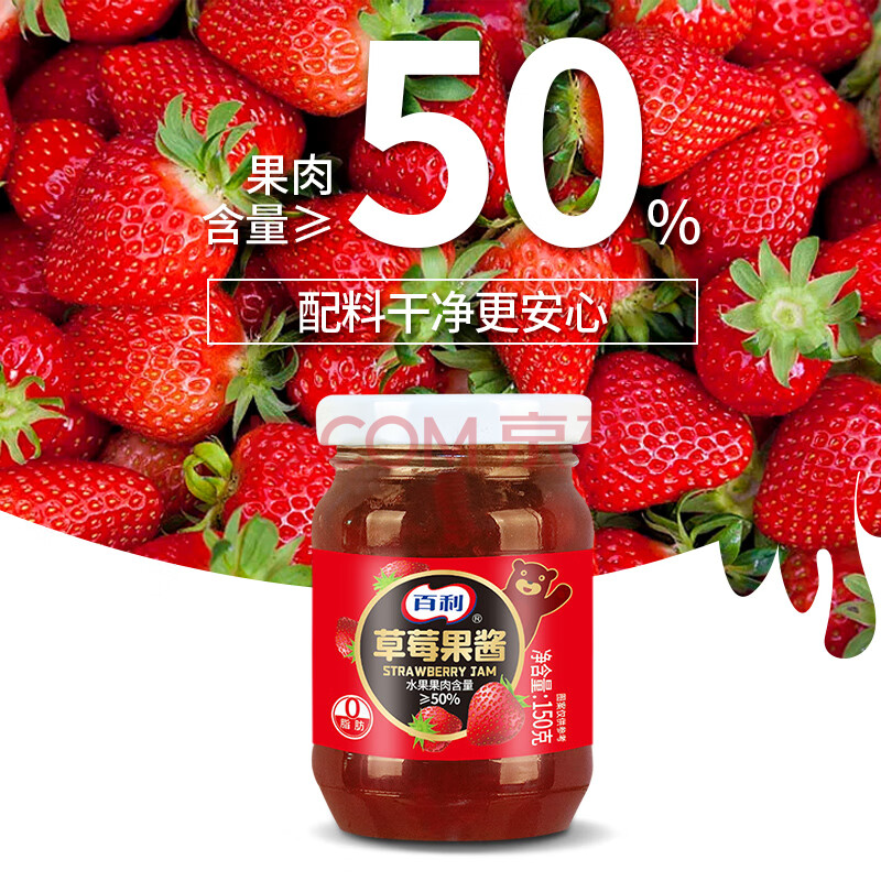 商品相册:百利 0脂肪草莓果酱果肉含量≥50% 吐司面包涂抹酱烘焙蛋糕酱料150g第