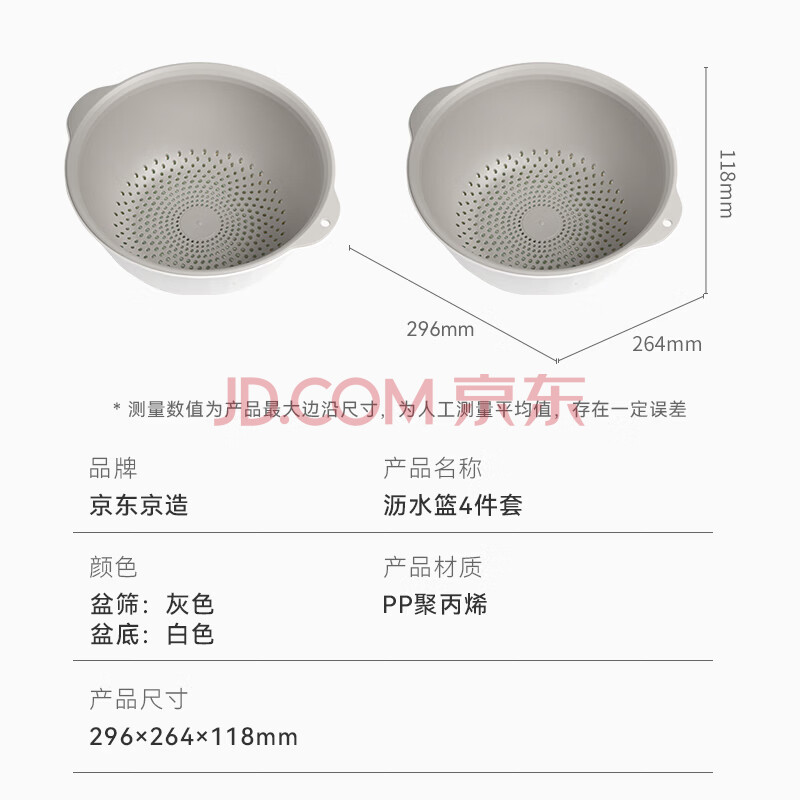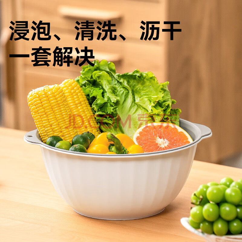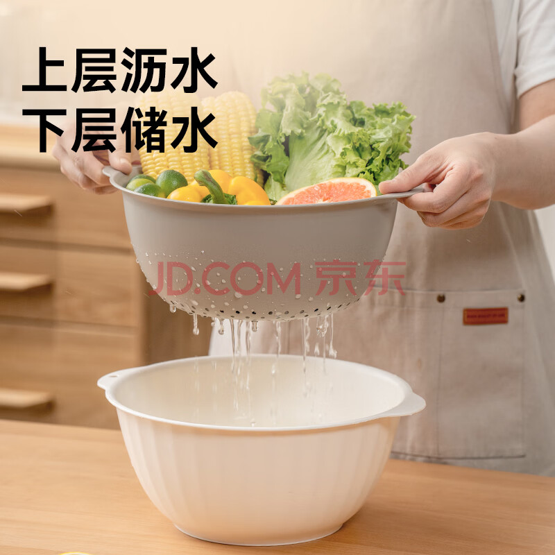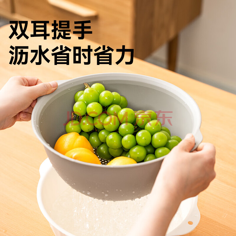 商品相册:京东京造双层沥水篮洗菜篮洗菜盆洗菜神器淘米篮水果篮盆筛4件套第