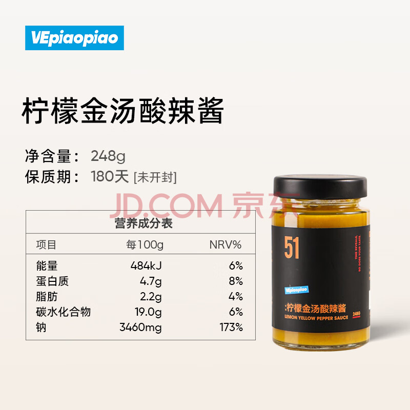 商品相册:VEpiaopiao柠檬金汤酸辣酱 家用酸汤肥牛酸菜鱼拌魔芋荞麦面酱料净含量248g第