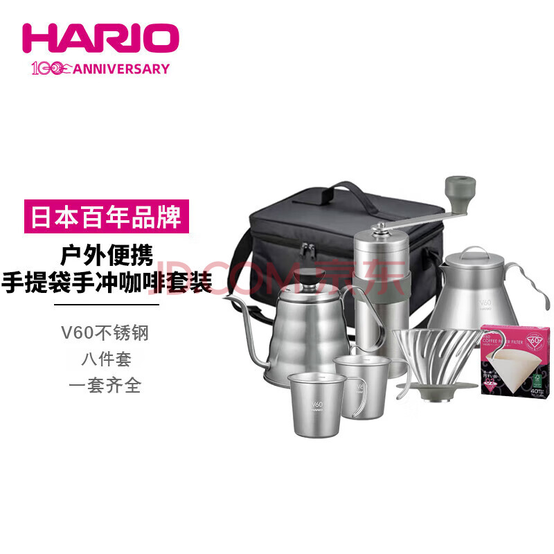 商品相册:HARIO 户外露营V60手冲咖啡壶套装滤杯磨豆机咖啡杯套装 送礼礼物第1张/共8