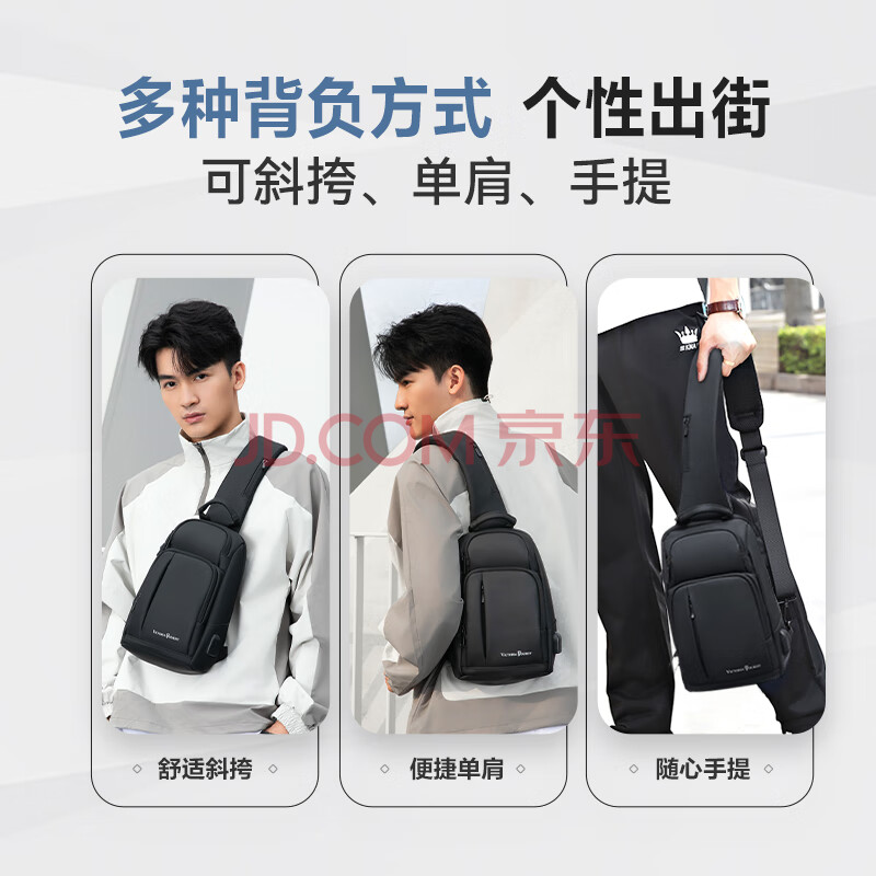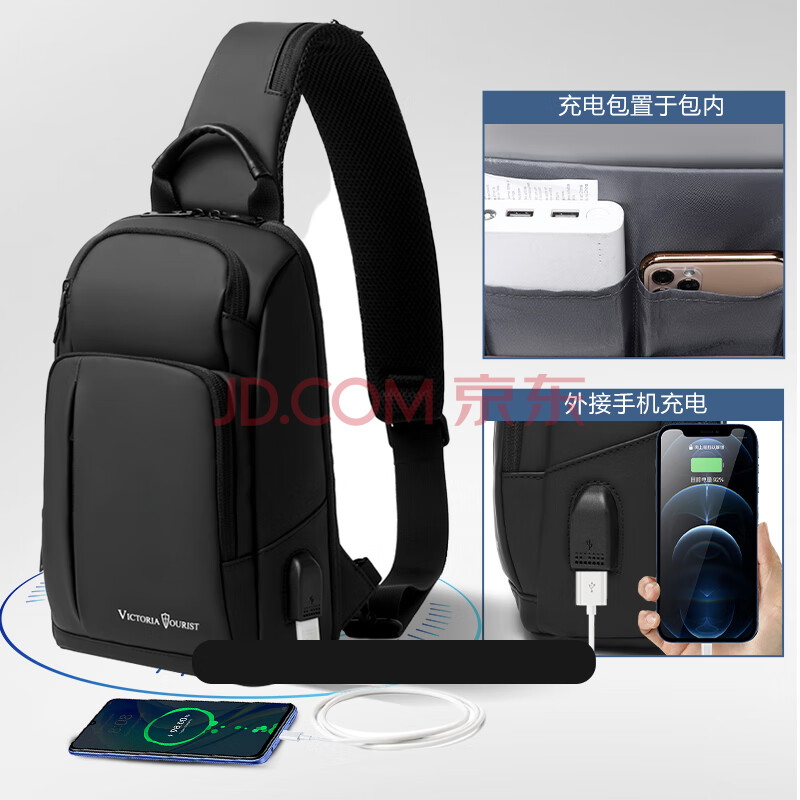 商品相册:VICTORIATOURIST胸包男士斜挎包高端单肩包腰包多功能休闲骑行手机包大容量挎包第