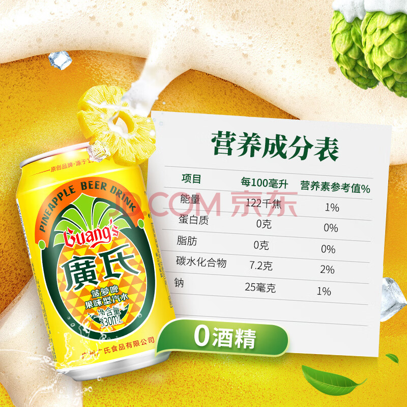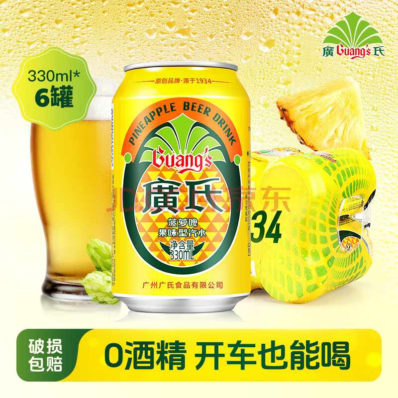 商品相册:广氏 菠萝啤汽水不含酒精菠萝果味饮料330ml*6罐第