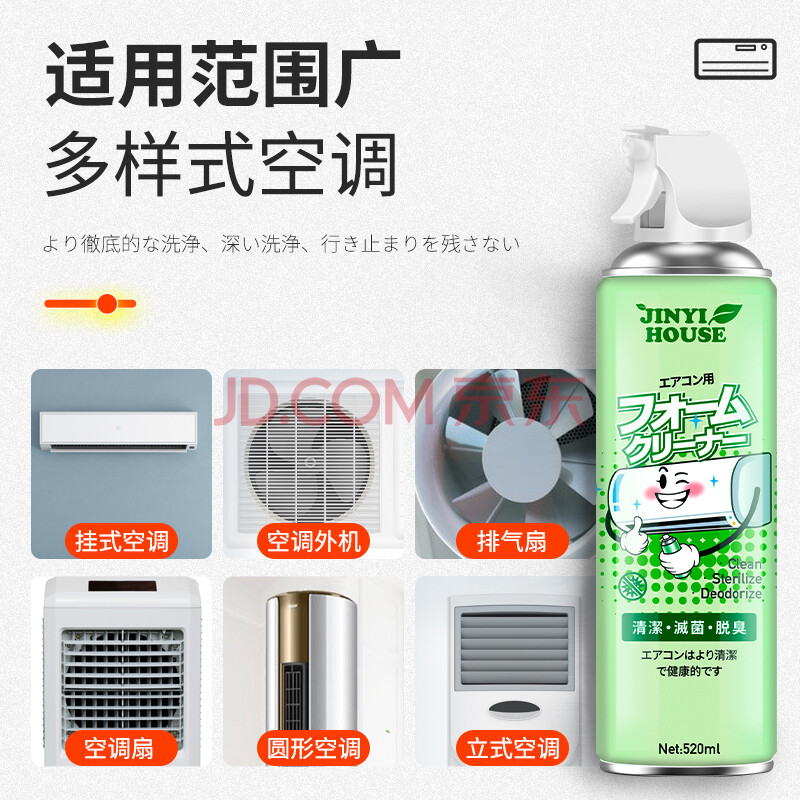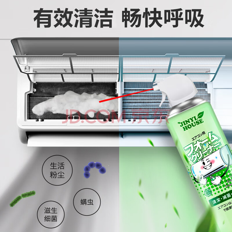 商品相册:JINYI HOUSE洗空调清洗剂520ml家用免洗免拆挂机内机专用泡沫涤尘清洁神器第