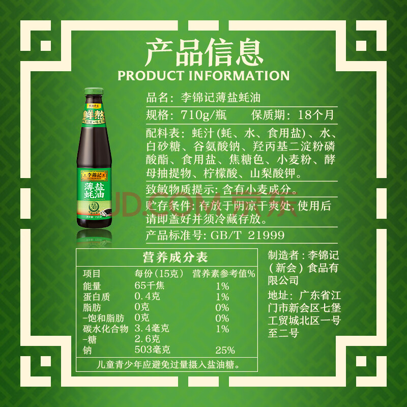 商品相册:李锦记 薄盐蚝油710g【减盐 0脂肪】鲜蚝熬煮 蘸拌炖捞炒蒸调味料第