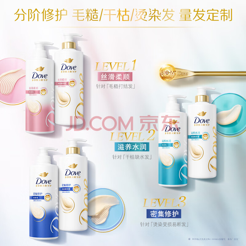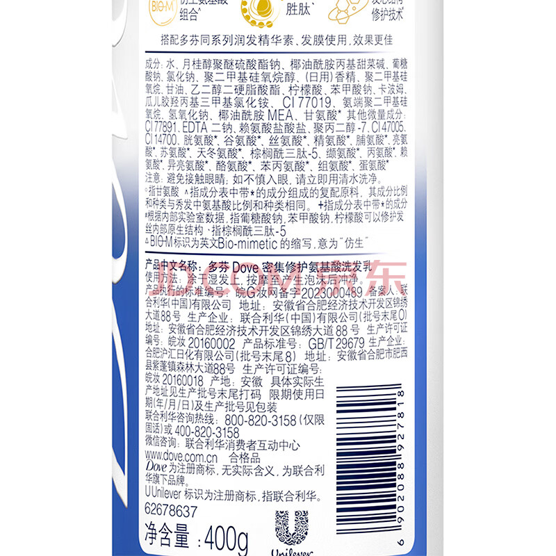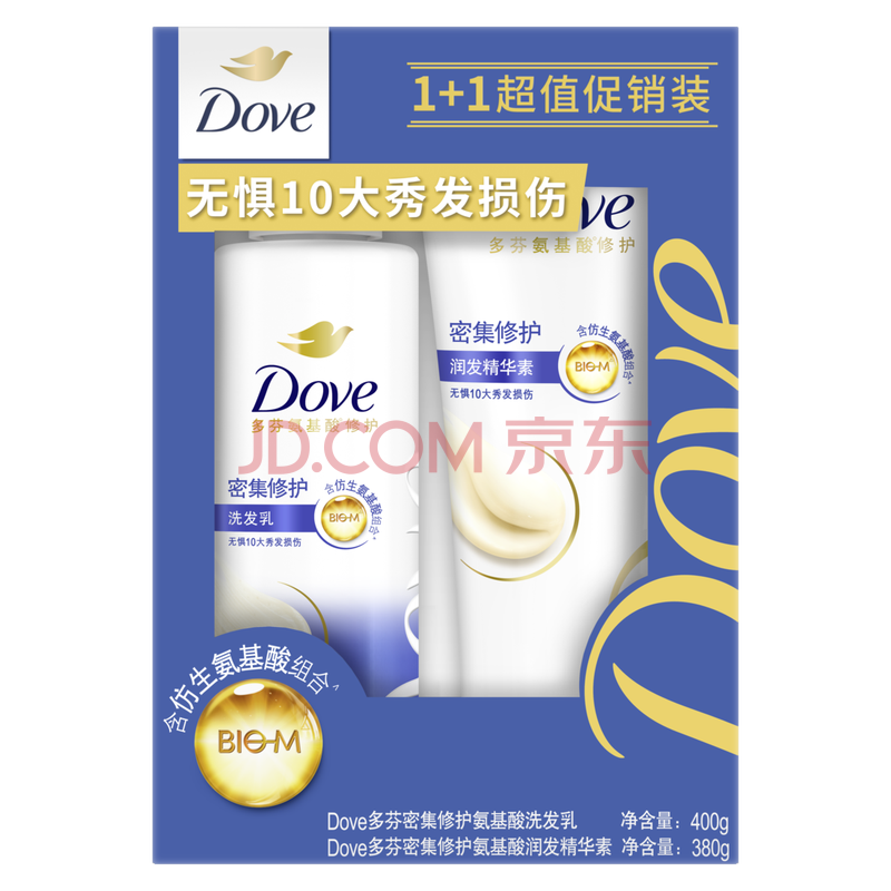 商品相册:多芬【密集修护】氨基酸洗发水护发素套装400g+380g 干枯受损毛躁发质第