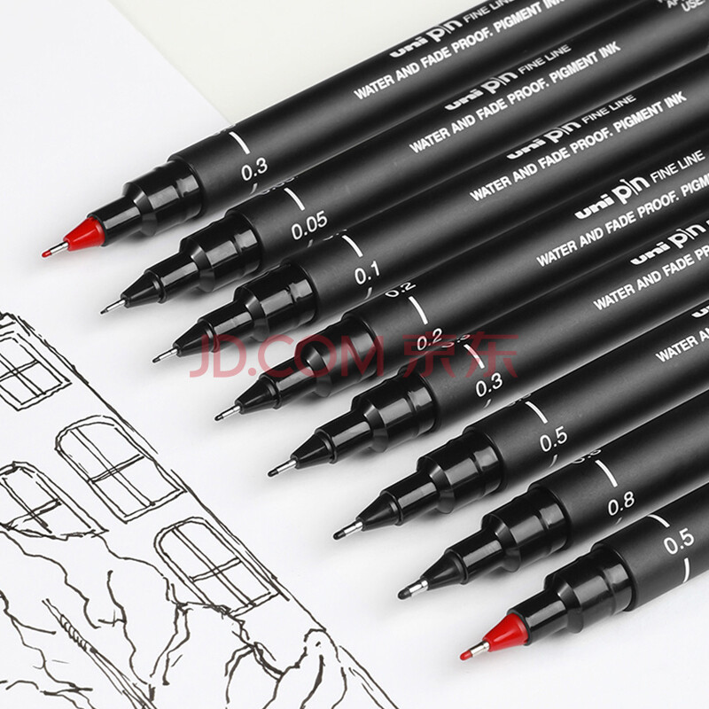 商品相册:uni三菱 0.5mm水性绘图针管笔 PIN-200美术设计描边笔勾线笔 深褐色 单支装第