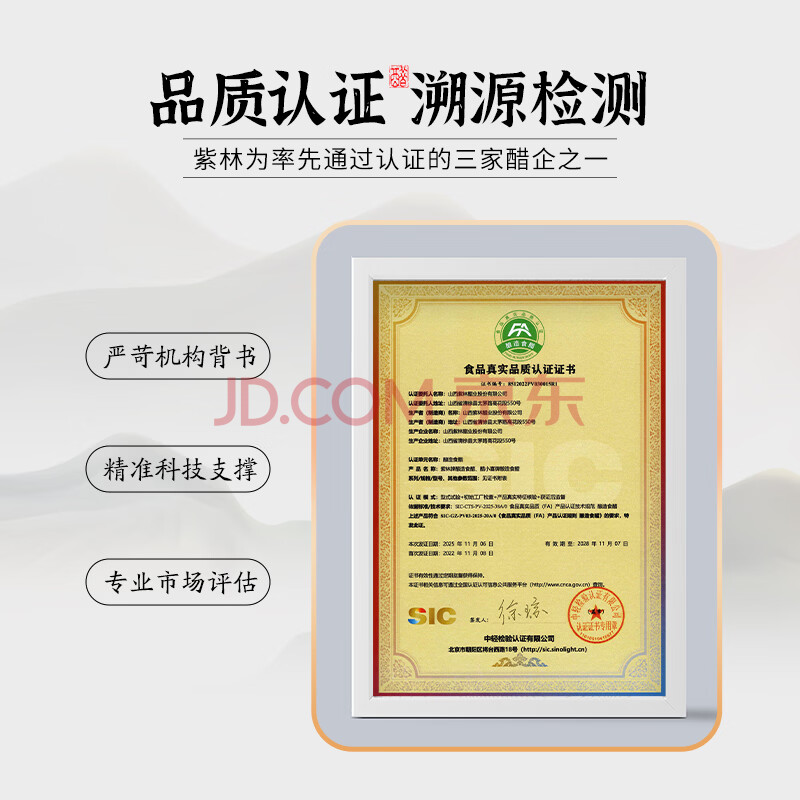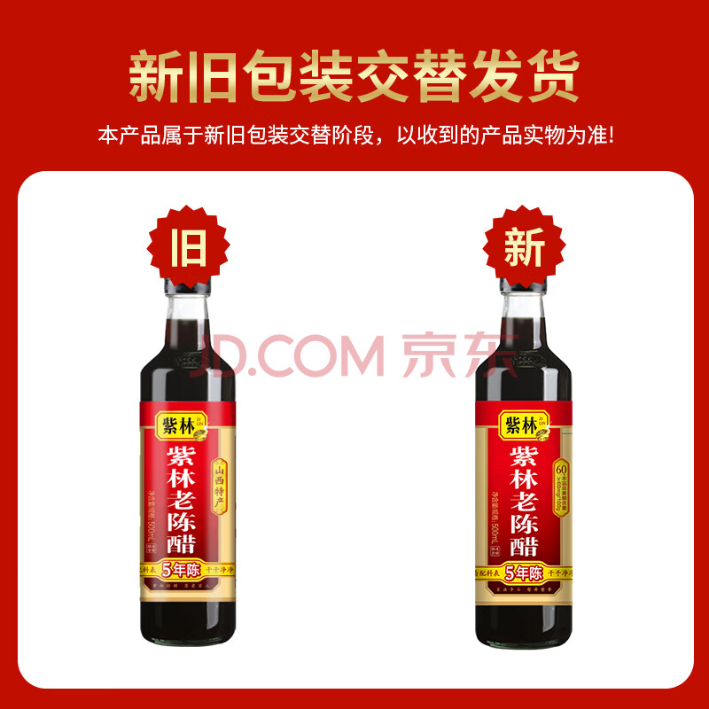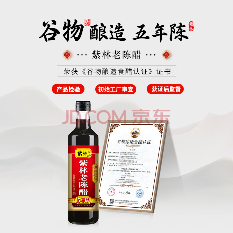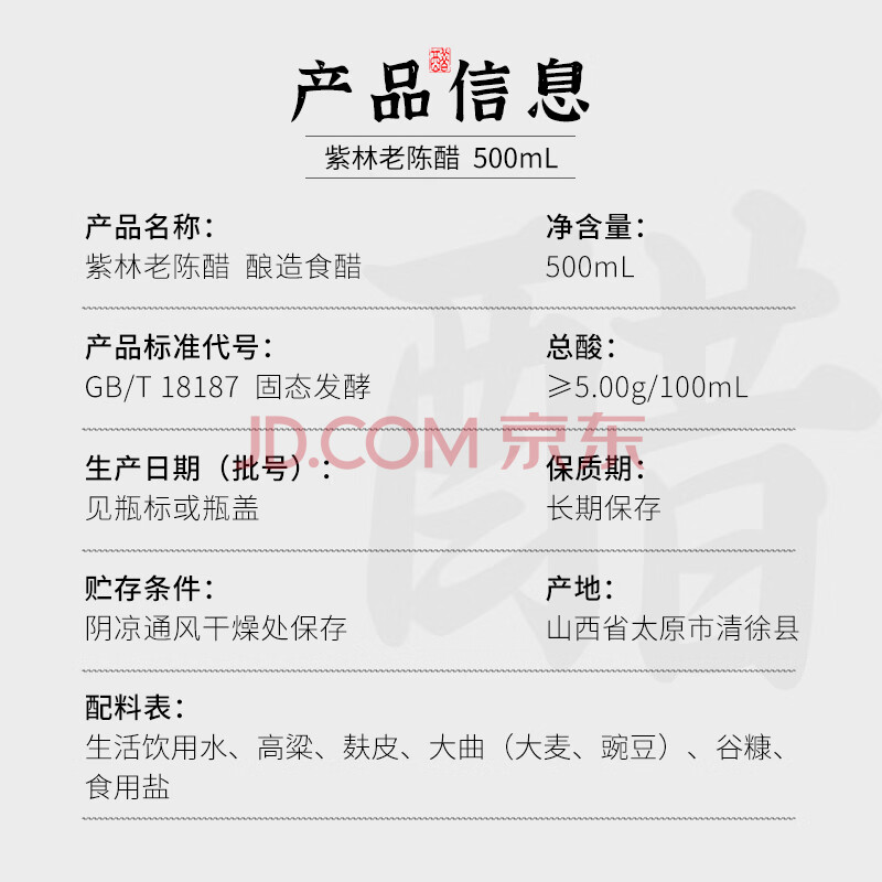 商品相册:紫林 醋 5度老陈醋 500ml 5年陈酿 0添加防腐剂 纯粮酿造 山西特产第1张/共8