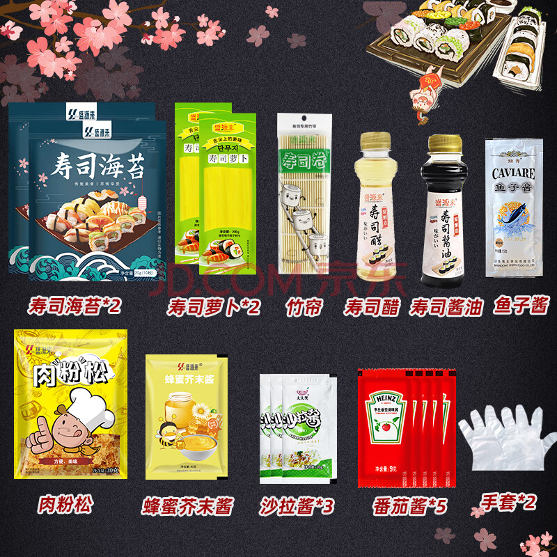 商品相册:盛源来寿司食材工具17件套 日韩寿司醋酱油海苔萝卜紫菜包饭肉松亲子DIY第
