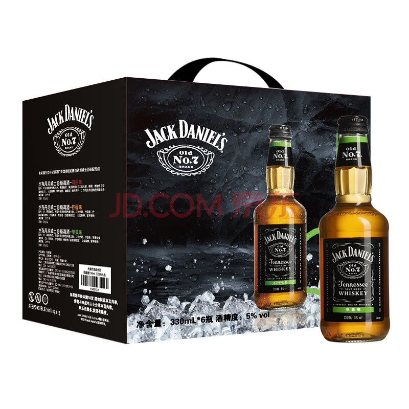商品相册:杰克丹尼(Jack Daniels)苹果味 礼盒装 330ml*6瓶 威士忌 预调酒第1张/共5