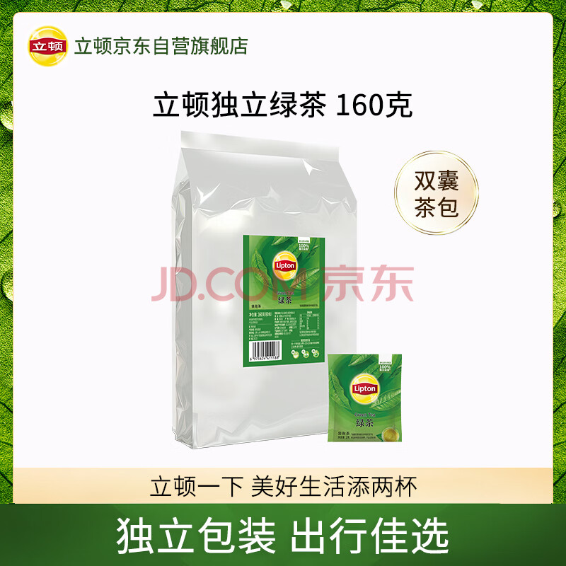 商品相册:立顿绿茶安徽黄山160g 送礼独立袋泡双囊茶包办公室下午茶2g*80包第1张/共8