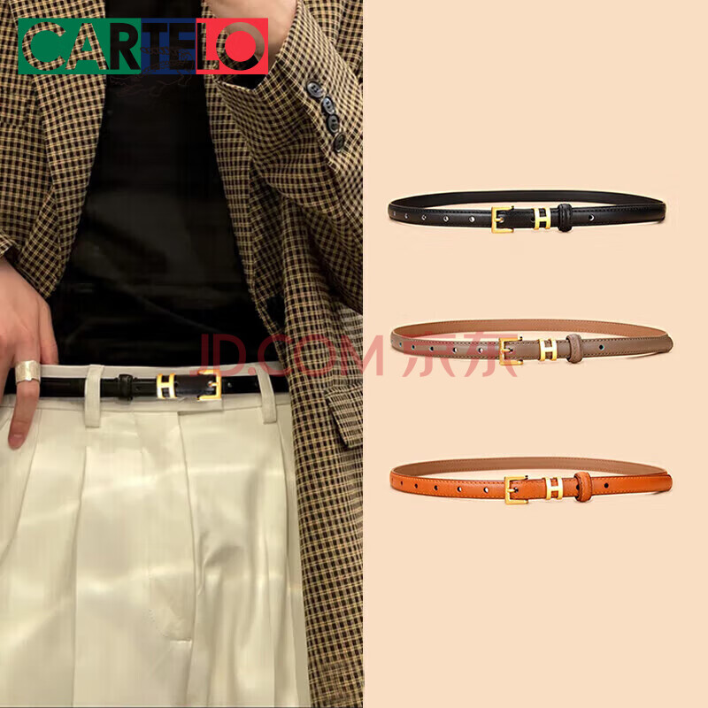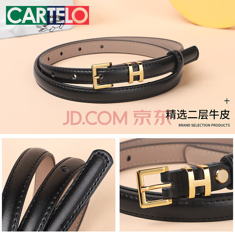 商品相册:卡帝乐鳄鱼女士皮带牛皮简约裤腰带休闲针扣细款裙带百搭时尚礼物第