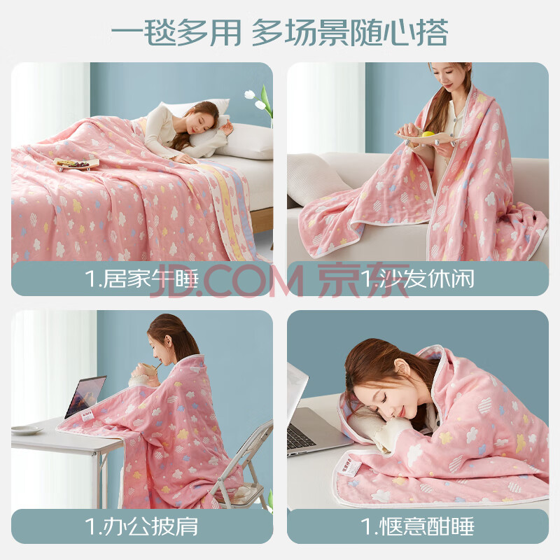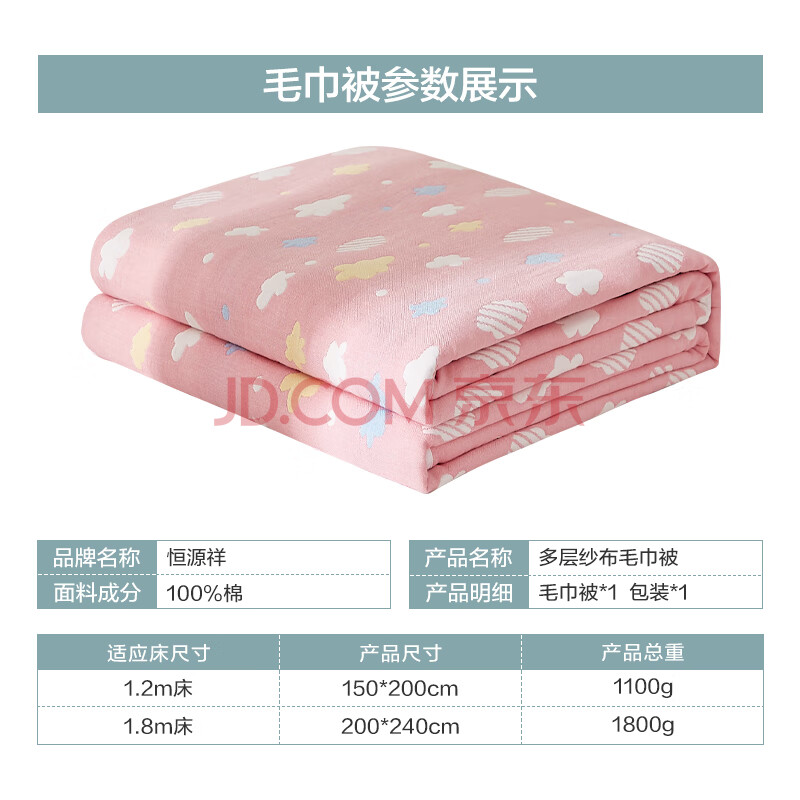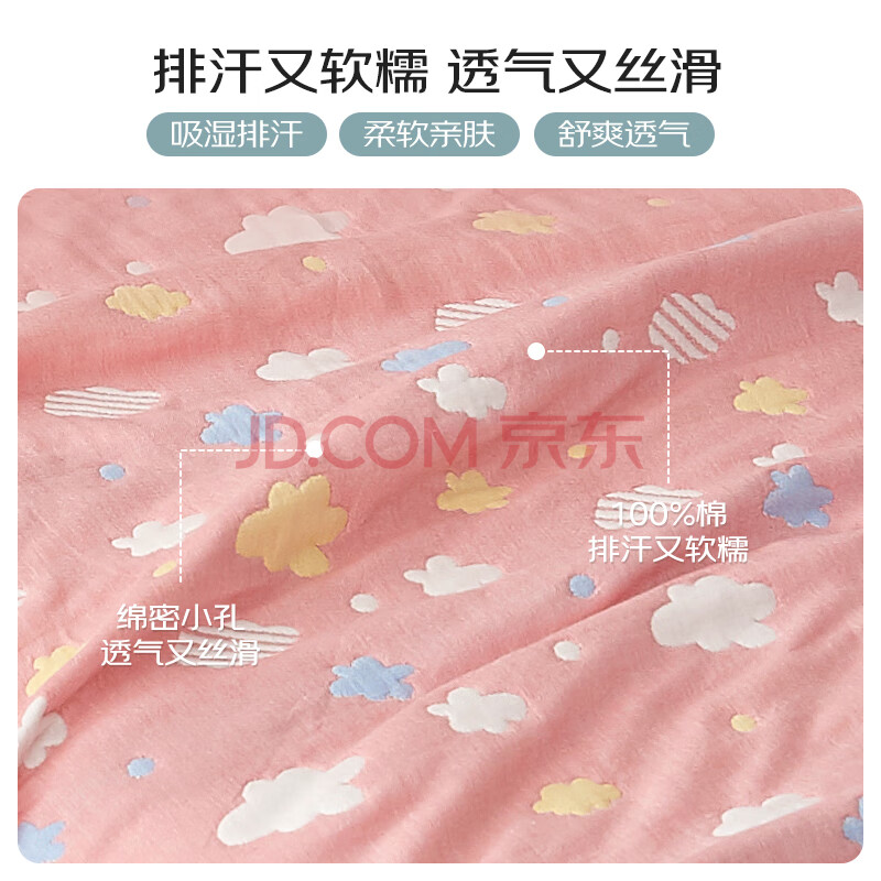 商品相册:恒源祥 纯棉纱布毛巾被六层加厚毛毯单人夏凉空调薄毯子午休毯150*200cm第1张/共5