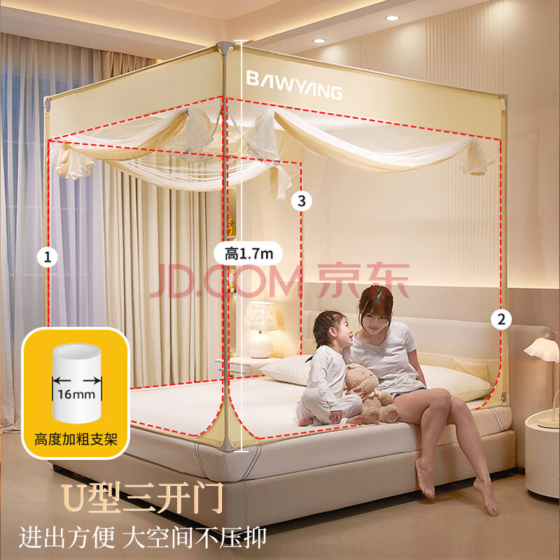 商品相册:La TorrettaA类婴儿宝宝防摔蚊帐家用三开门加密防掉坐床方顶蚊帐1.8/1.5米床第1张/共6