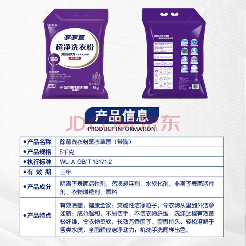 商品相册:家家宜超净洗衣粉10斤*2袋 除菌抗菌3倍蛋白去渍不伤手无磷易漂持久留香第1张/共9